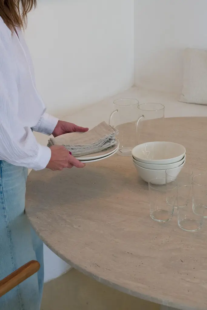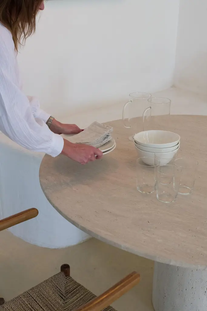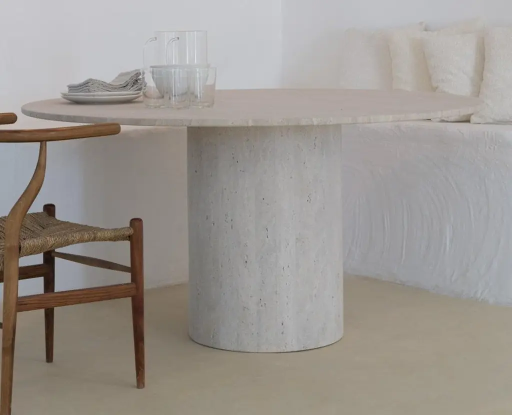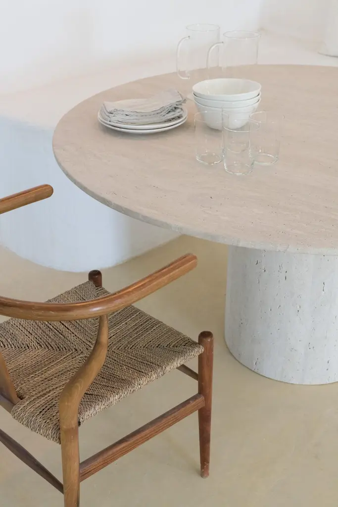 Round Top 140 Muted Beige Travertine Round Dining Table By Beije Avenue
