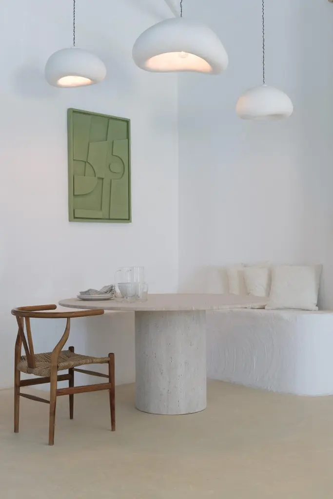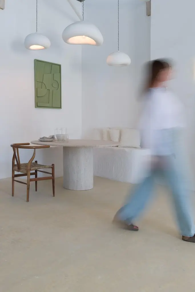 Omega Lizea 140 Handcrafted Travertine Round Dining Table by Beije AvenueDimensions: Ø 140 x H 145 cm. Materials: Travertine.Available in different size options. Please contact us.Our Omega circular dining table is the perfect blend of handcrafted design and functionality. Its rigid base offers a sculptural aesthetic, while the rounded edge of the tabletop provides a balanced texture and a functional surface for dining enjoyment for years to come.A highly prized rock during Antiquity, Travertine displays its unique roughness to transcend the most charismatic designer pieces.It has unique characteristics that allow it to stand the test of time without losing its value. Raw yet sensual, mineral without being cold, vibrant and textured, Travertine floods interiors in search of a sophisticated natural look. Travertine stone held a prominent place in the era of ancient Rome. Indeed, it was used in the construction of famous buildings such as the Colosseum and the Theatre of Marcellus.At Beije Avenue, we work with a porous natural travertine, lighter than marble or granite. Its specificity: it is made up of small, unevenly distributed cavities which give it character and an authentic cachet. Travertine can take on various shades of color, depending on the area where it is extracted. We can therefore observe a panel which varies from very light beige to ivory, which allows us to give a noble and sophisticated look.