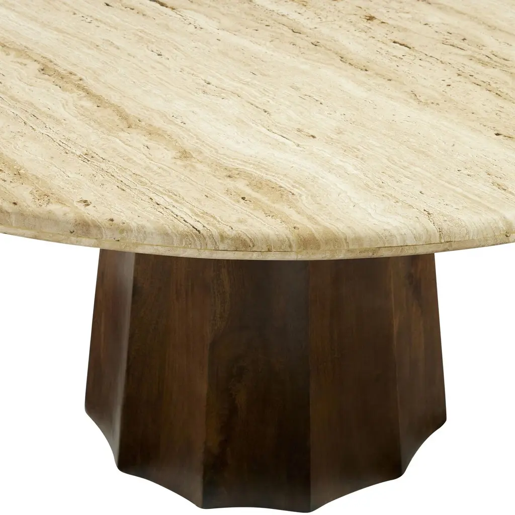 Rowenna 60" Round Travertine Top Dining Table, Brown