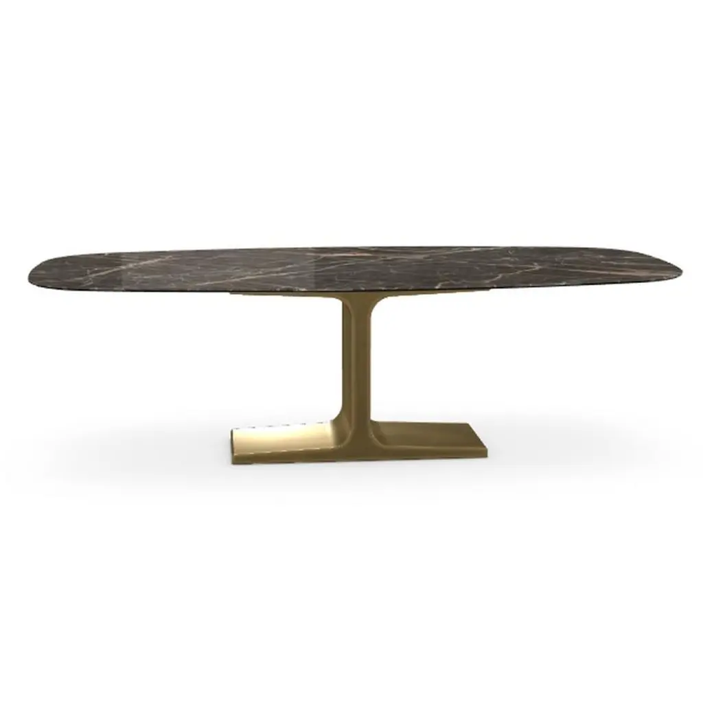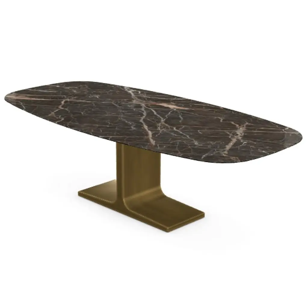 Royal, Dining Table Emperador Ceramic Top On Brass Base, Made In Italy