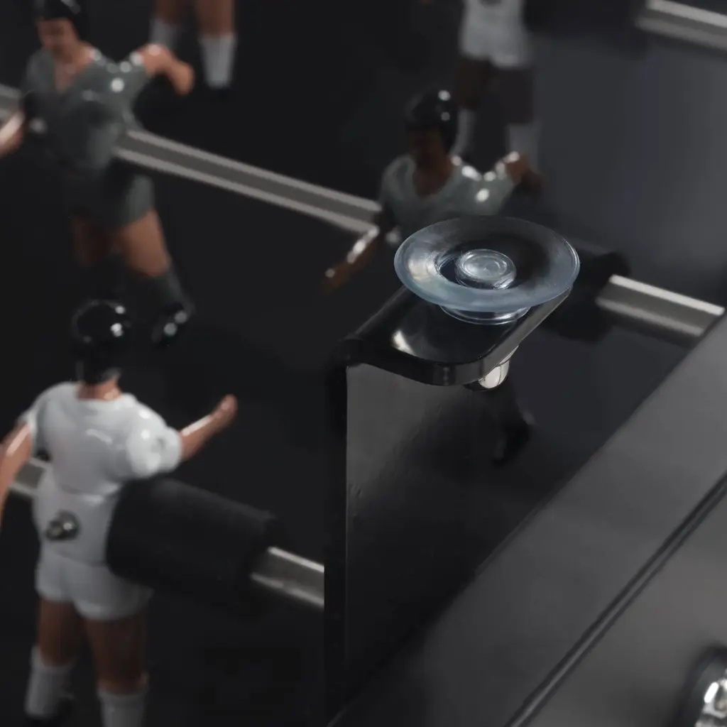 Call it the new training table. Max Dining supersizes simultaneous gameplay and mealtime for a crowd with RS Barcelona’s longest dual-purpose table. Equally suited to hospitality, office or at-home environs, designer Rafael Rodriguez adds a tempered-glass tabletop to his extended version of brother RS#3 Wood. Stretched out and resized, it doubles the fun, for 8 players instead of 4. Rated for use inside or outdoors, Max comes in white, black or green—and stands up to intense play with its steel structure and cataphoretic coating process with a polyester paint finish. Iroko wood legs and handle. Players are rendered in cast aluminum (the set includes 5 standard and 2 silent balls and 4 extra players, 2 per team; customized players available).