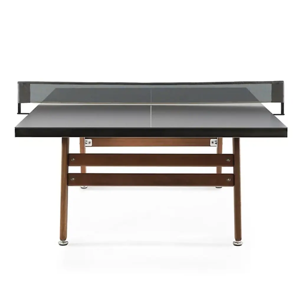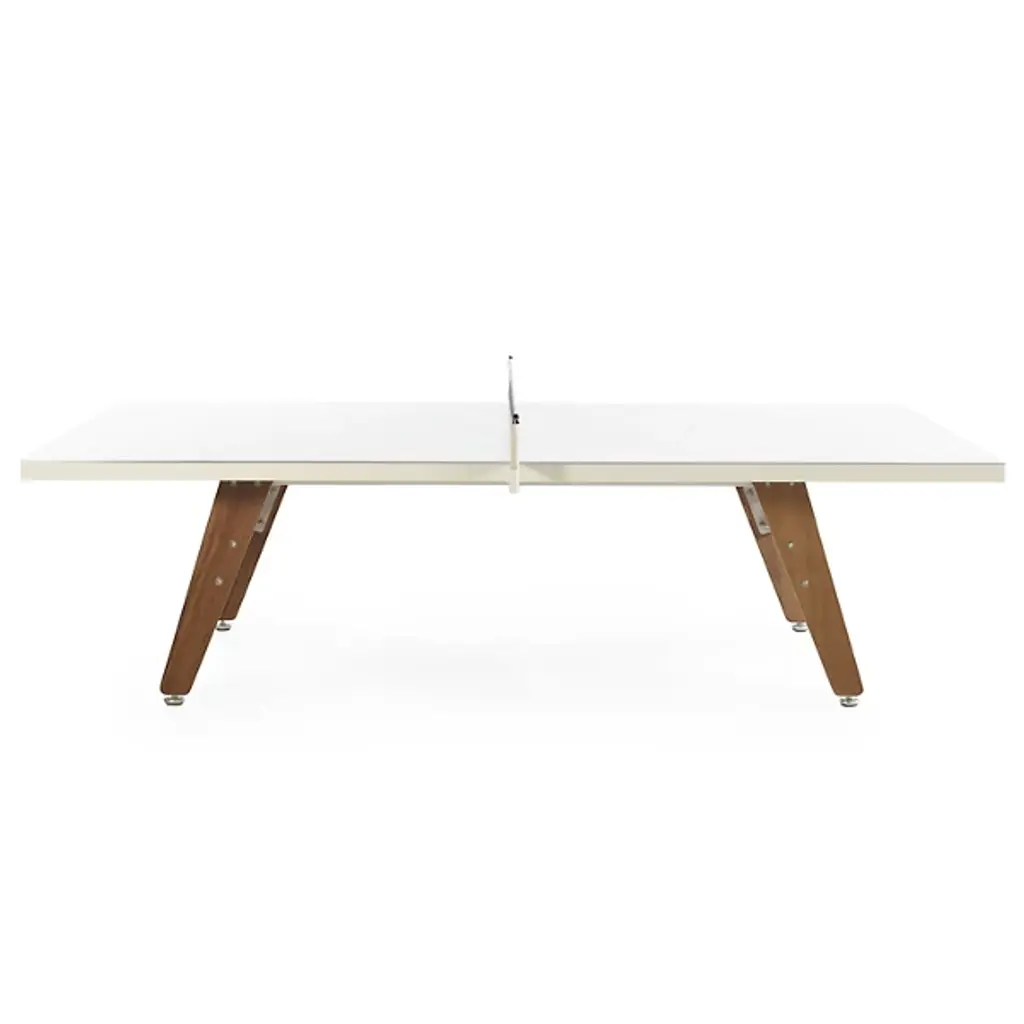 We aren't playing when we tell you just how fun and stylish the RS Barcelona RS Ping Pong Table is. It features a glossy HPL top on angled Iroko wood legs, with a polyester net; all components are durable for outdoor use as well as in. Simply by removing the net, you can easily convert the table for dining or work after ping pong play is done.