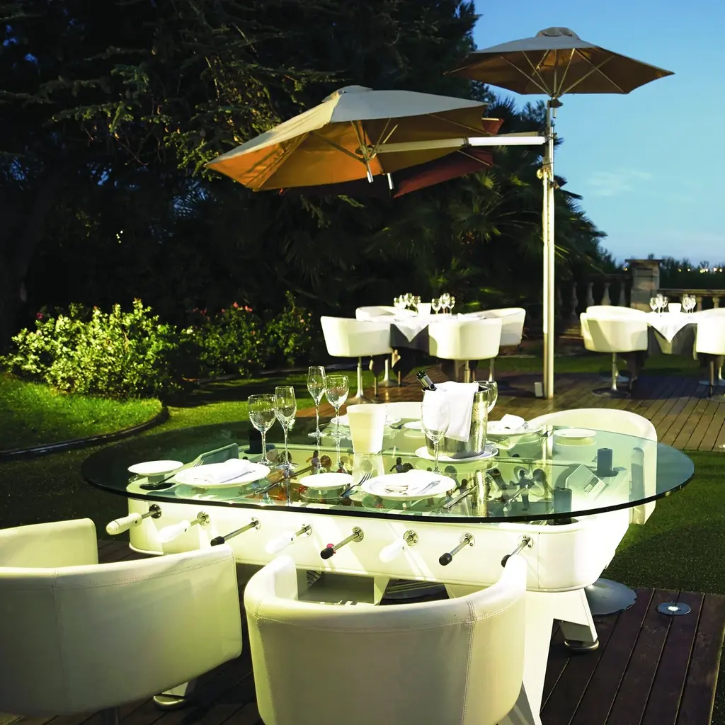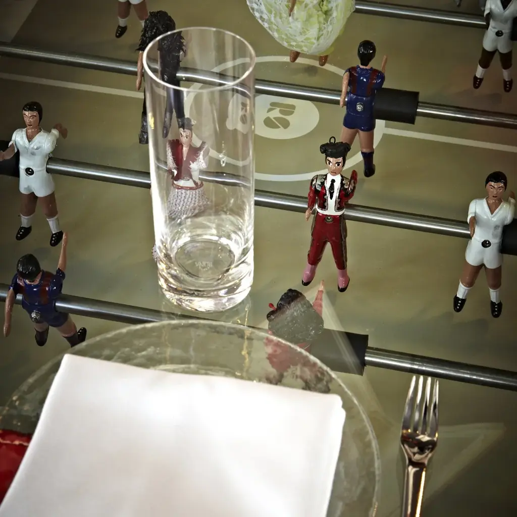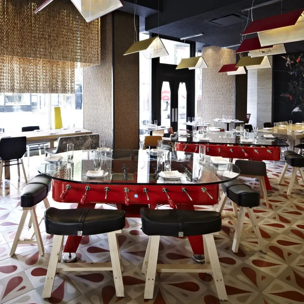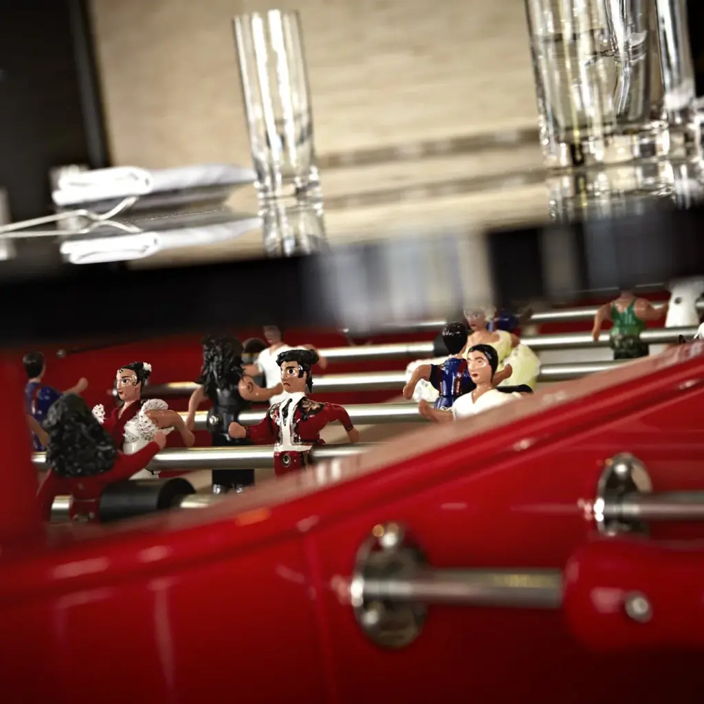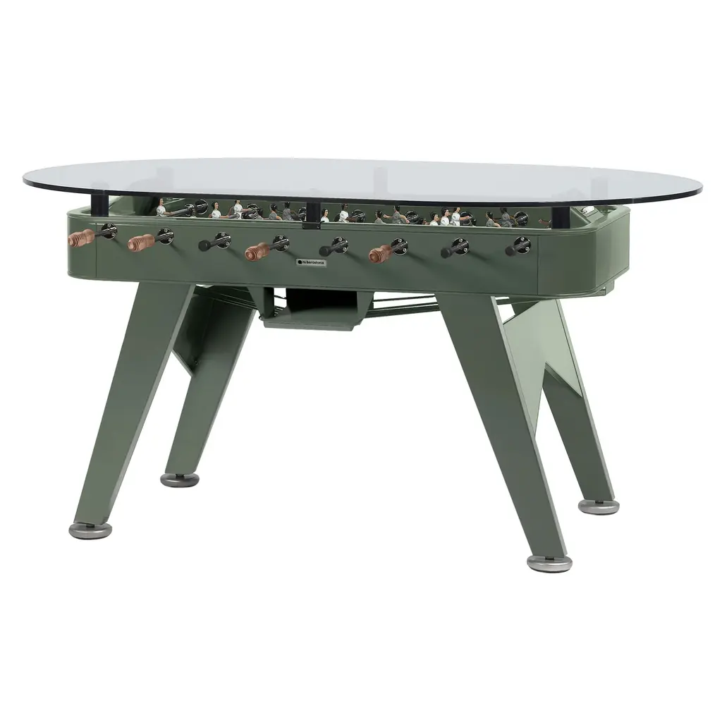 When Spanish superstar chef José Andrés wanted to add RS Barcelona’s football table to further spice up his restaurant interiors, the custom project inspired a sleek hybrid for lovers of the game and gastronomy. With its sturdy oval tempered-glass tabletop, RS2 Dining accommodates up to 6 guests for mealtime without having to interrupt the matchplay. Available in both seated standard and taller bar heights, the sleek metal table comes in a steel indoor version in a range of colors, an Indoor model in non-corrosive Inox stainless steel and an indoor stainless selection in protective polyester-paint hues. Custom players are also available.