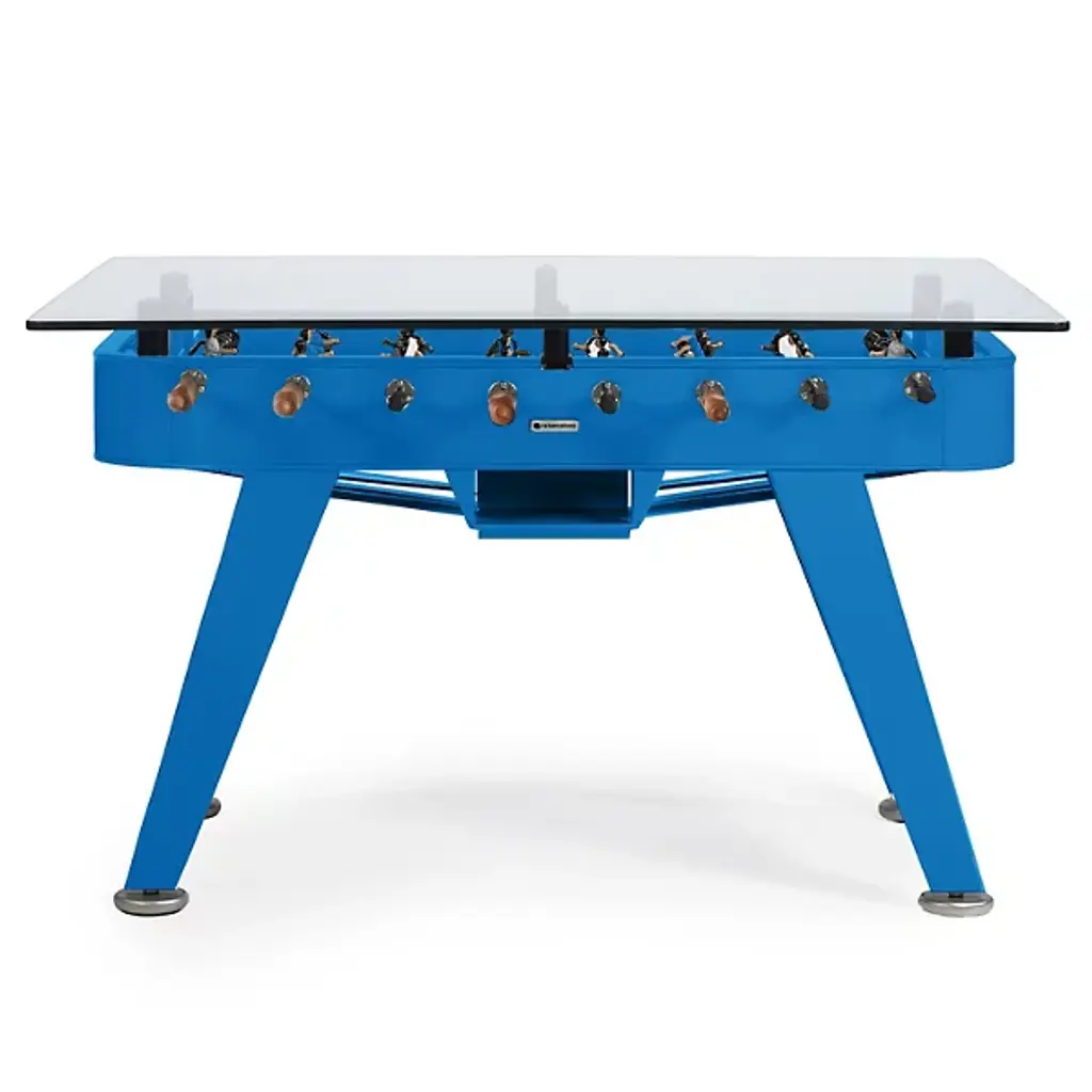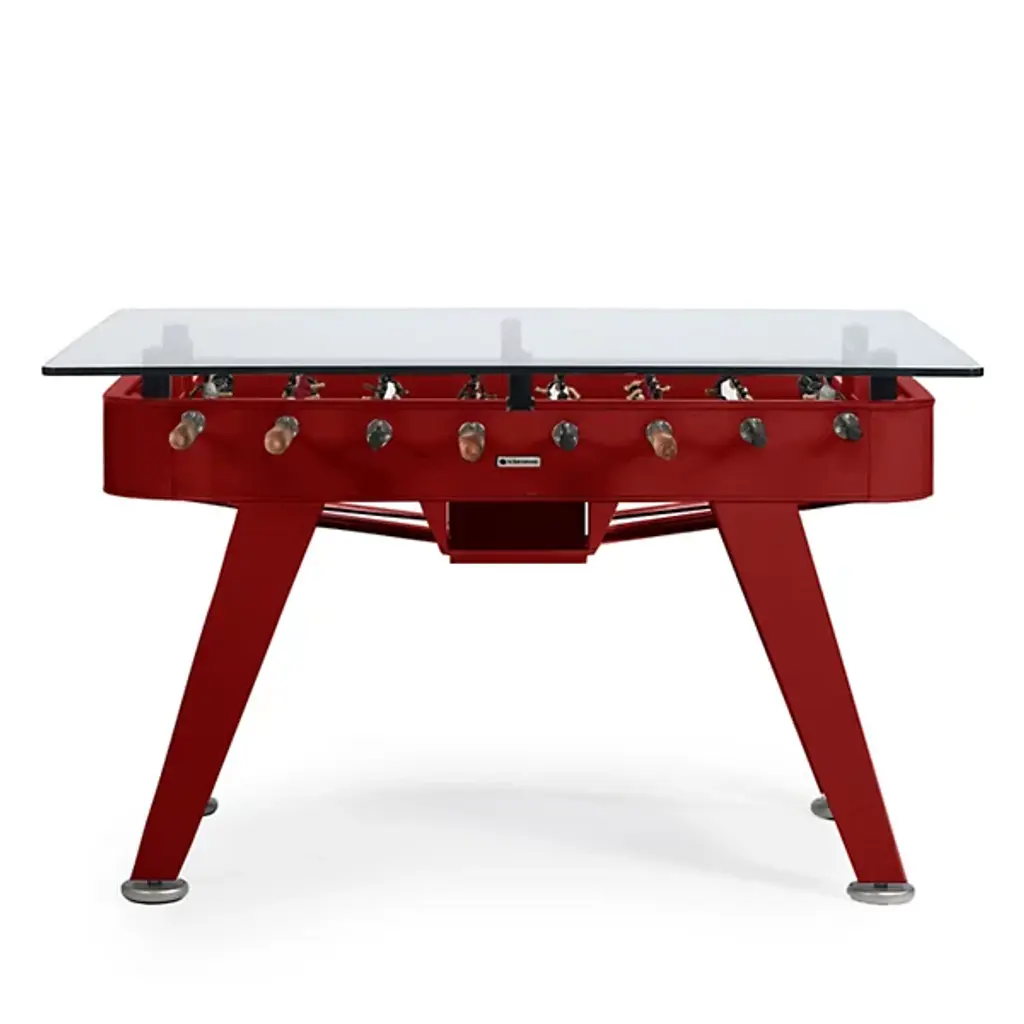 Bring an appealing, fun-filled surface to your gathering spaces with the stylish, elevated look of the RS2 Rectangular Dining Foosball Table from RS Barcelona. A stainless steel construction surfaced in a matte-textured paint, it seats a thin, strong rectangle of tempered glass over a round-cornered football pitch. Designed by Rafael Rodriguez in partnership with renowned Spanish chef José Andrés, it’s clever, customizable, and tough enough for group gatherings, while the clear glass surface allows you to observe your games between courses with ease.