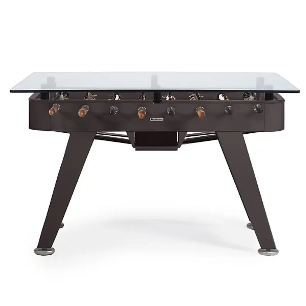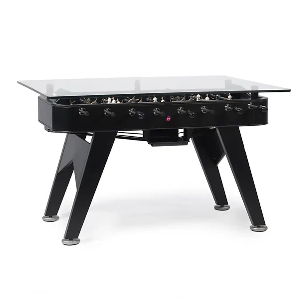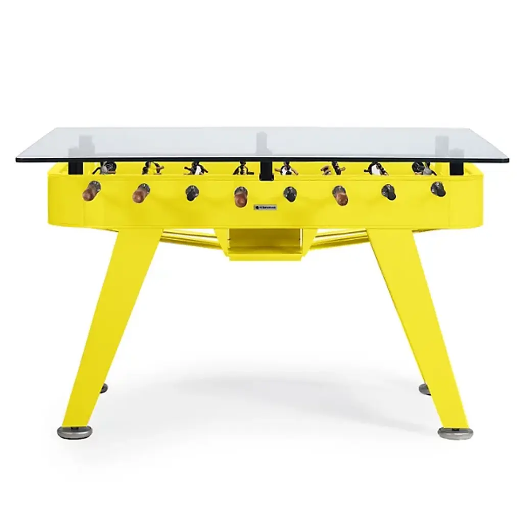 Bring an appealing, fun-filled surface to your gathering spaces with the stylish, elevated look of the RS2 Rectangular Dining Foosball Table from RS Barcelona. A stainless steel construction surfaced in a matte-textured paint, it seats a thin, strong rectangle of tempered glass over a round-cornered football pitch. Designed by Rafael Rodriguez in partnership with renowned Spanish chef José Andrés, it’s clever, customizable, and tough enough for group gatherings, while the clear glass surface allows you to observe your games between courses with ease.