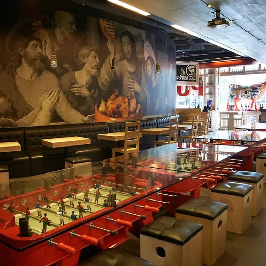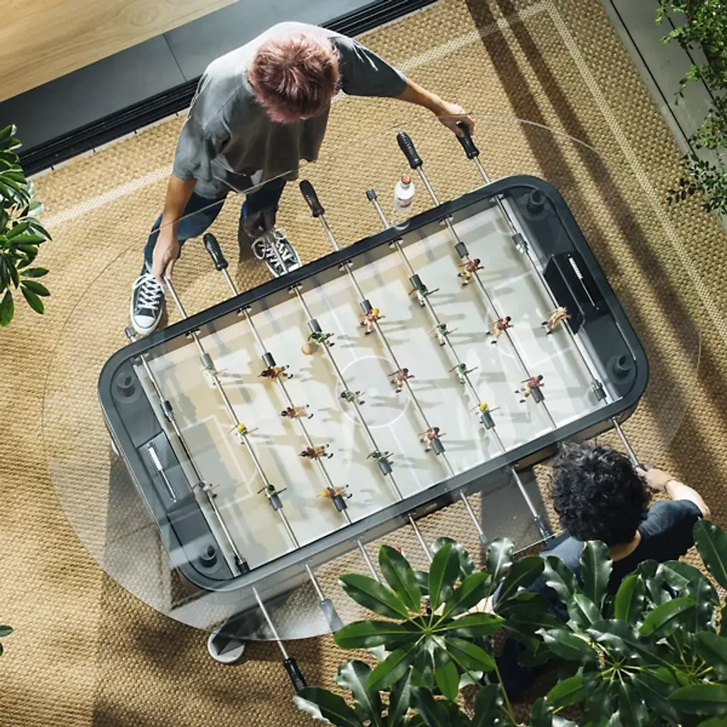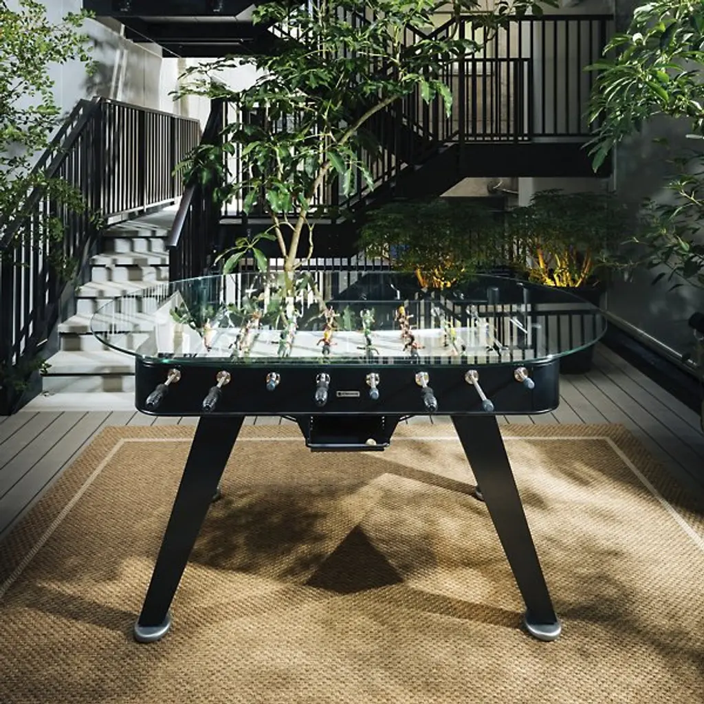 Bring an appealing, fun-filled surface to your gathering spaces with the stylish, elevated look of the RS2 Rectangular Dining Foosball Table from RS Barcelona. A stainless steel construction surfaced in a matte-textured paint, it seats a thin, strong rectangle of tempered glass over a round-cornered football pitch. Designed by Rafael Rodriguez in partnership with renowned Spanish chef José Andrés, it’s clever, customizable, and tough enough for group gatherings, while the clear glass surface allows you to observe your games between courses with ease.