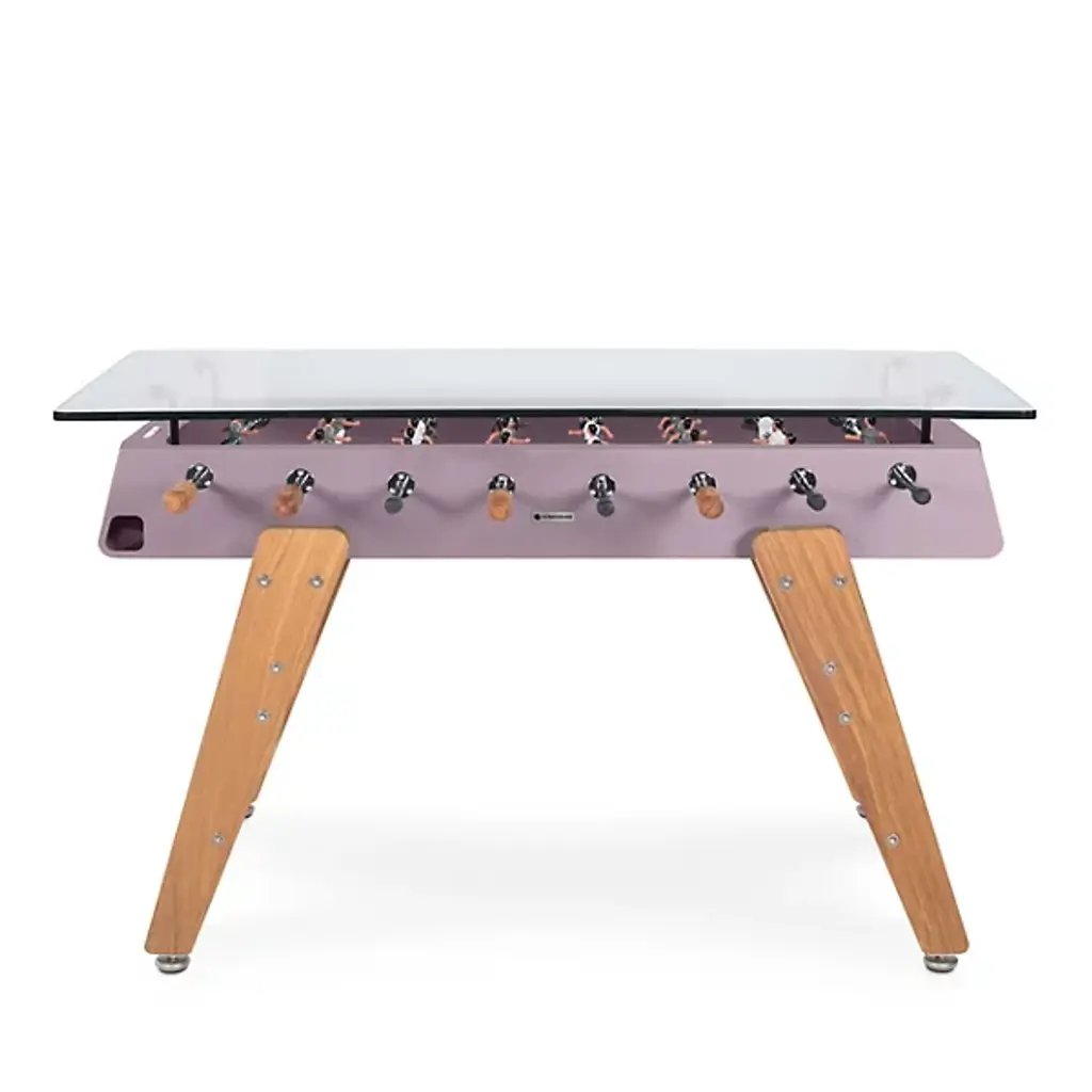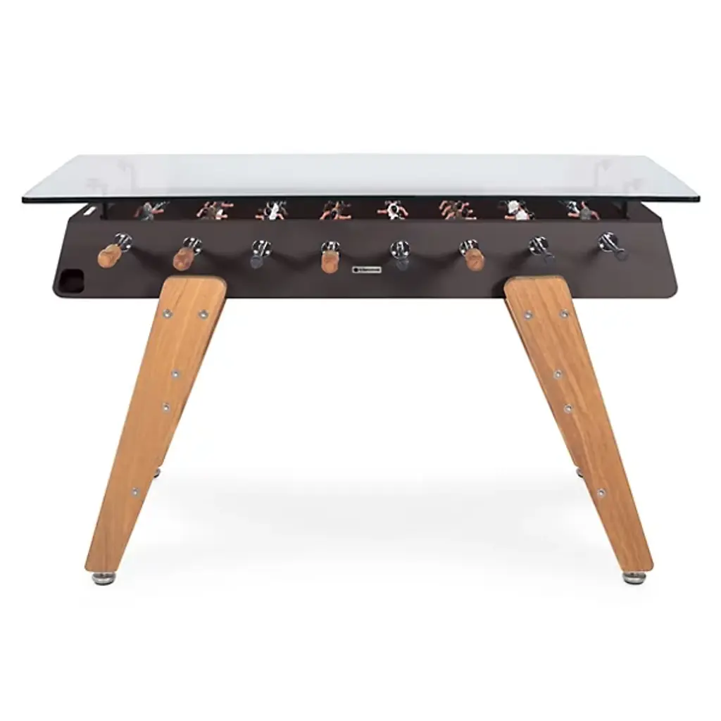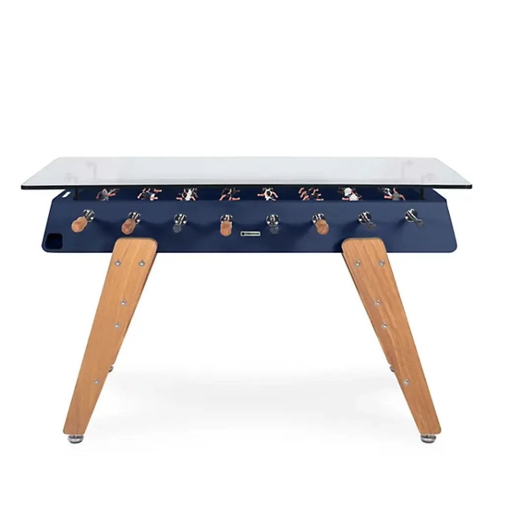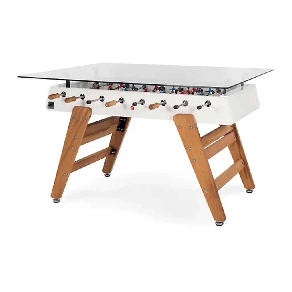 The RS3 Foosball Table/Rectangular Wood Dining Table by RS Barcelona is the perfect piece to stand around or pull up a set of your favorite stools to. Fun and functional, this foosball table was designed by José Andrés and Rafael Rodríguez and features a glass top that allows it to also act as a dining table. Between games, this piece is perfect to gather around for a meal or offers a space for snacks and drinks during gameplay. Suitable for both indoors and out, this table is fitted with beautiful wooden legs, and the neatly arranged players within are always ready for a match.