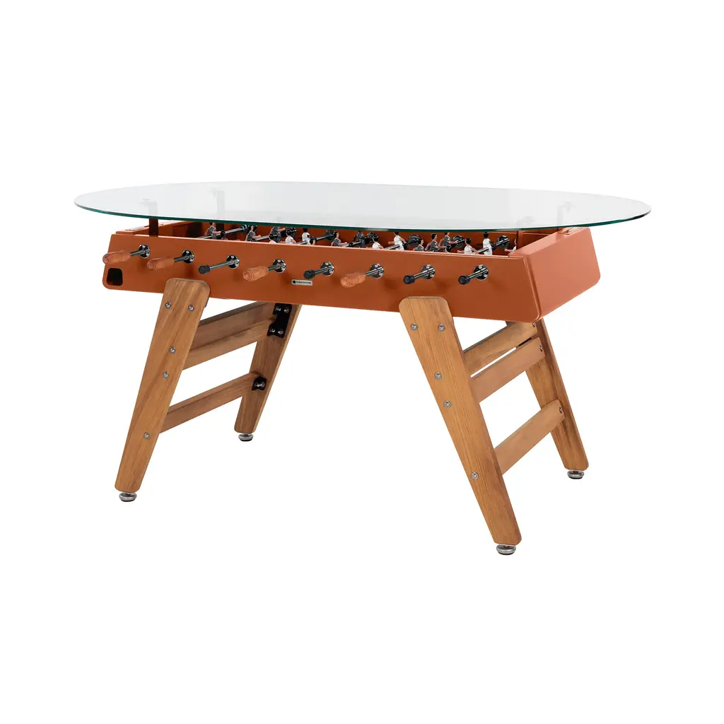 “Gastronomy meets playtime” says celebrated chef José Andrés of his combo dining-foosball table in league with RS Barcelona. Underneath either a rectangular (to seat 4) or oval (to seat 6) glass top, sits a classic miniature playing field so the sparring can continue uninterrupted during mealtime. Crafted in beech wood with tough poly paint, the table’s quite the looker as well, in a selection of high-impact colors or rich Iroko woodgrain.