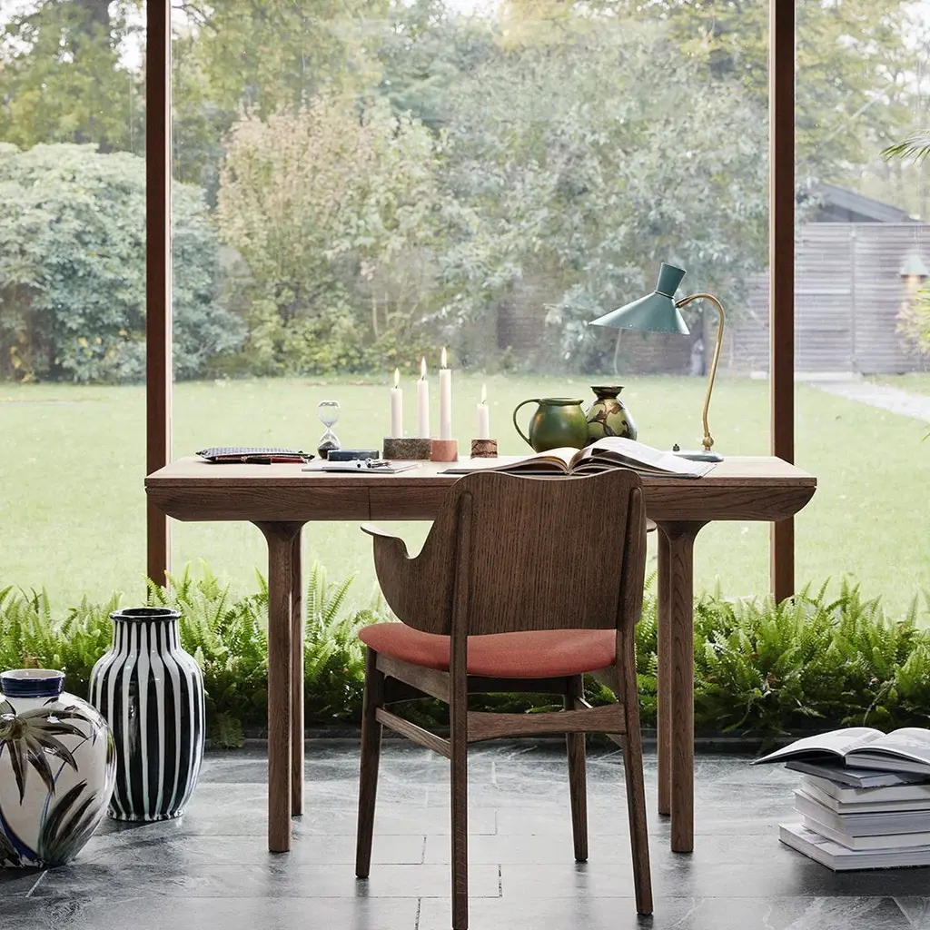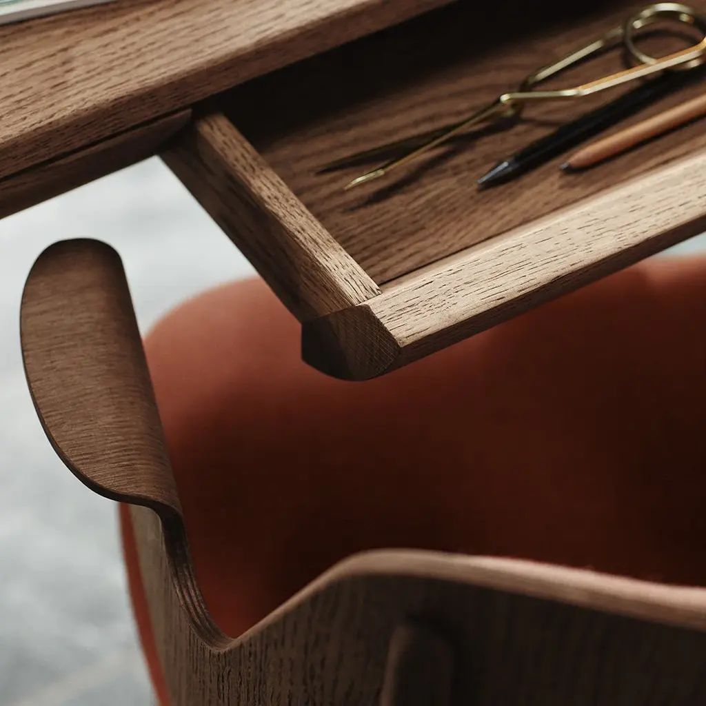 Timeless desk with a poetic idiom and a neat little drawer. With its pure and classic design, Runa creates a space around itself and boosts your entire interior design whether the desk is placed in a living room with stucco ceiling or in a modern office. The Runa table can also be used as a dining table if the dining space is limited. The elegant desk drawer can be used to keep office supplies, paper and letters as well as place mats and napkins. The talented Danish designer Isabel Ahm found inspiration for the table in the secretive ambience and poetry found in the Nordic forests at dusk indeed, Runa shares the same enigmatic trait. The table is made of dark wood types of the highest quality. Choose between several beautiful, classic finishes.