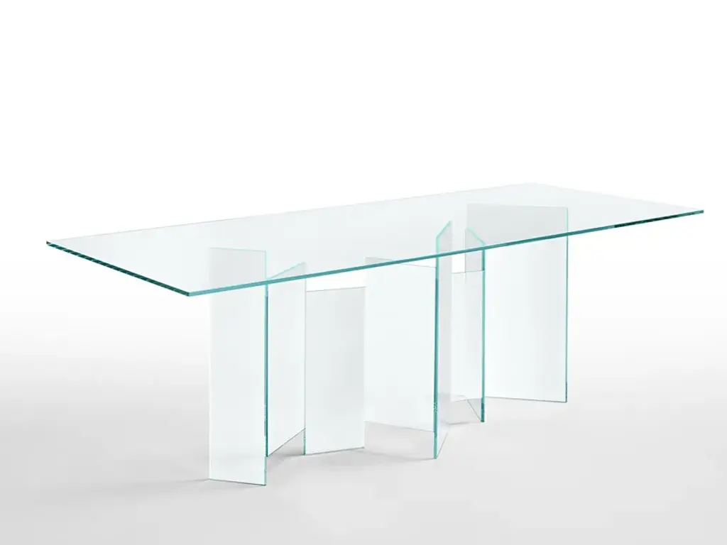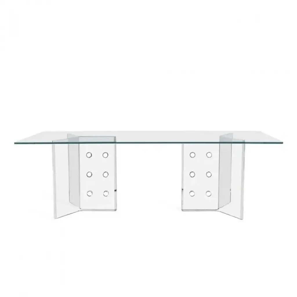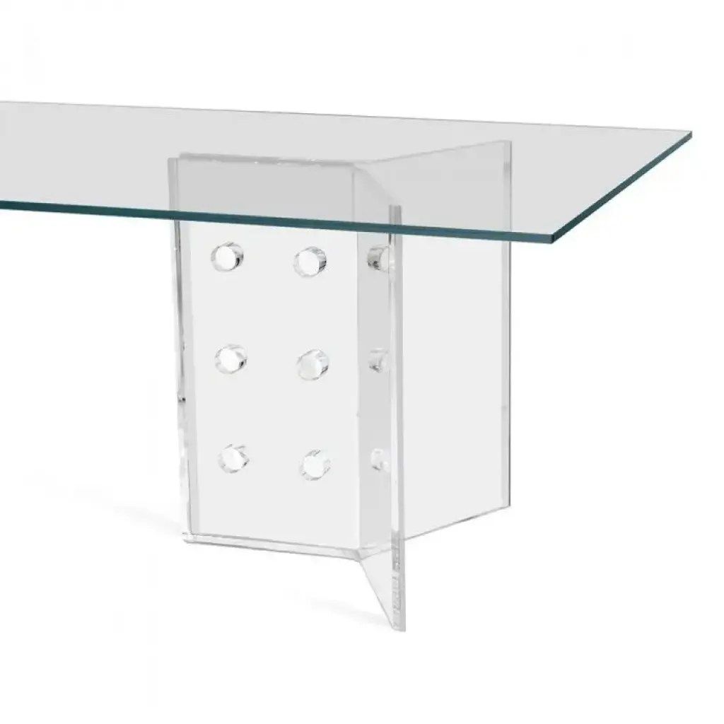 Crafted in glass and acrylic, the simple forms of the Ryane Dining Table add a sophisticated elegance to any living space.