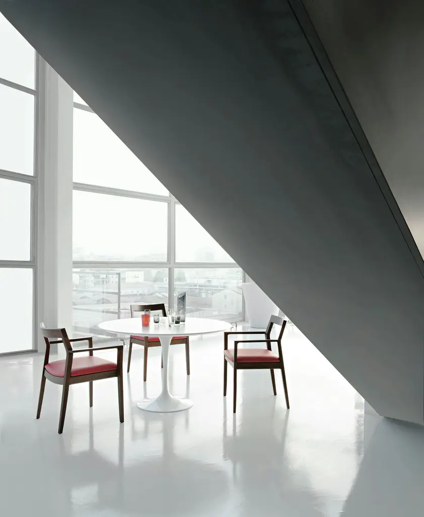 With the Pedestal Collection, Eero Saarinen resolved the "ugly, confusing, unrestful world" underneath tables and chairs. The collection is a defining accomplishment of modern design and a timeless addition to your home—a true classic.In his purist approach to architecture and design, Eero Saarinen sought the essential idea and reduced it to the most effective structural solution. One of the most exemplary examples of which is the one-legged design of his Pedestal Collection. These effortlessly majestic pieces came from his desire to eliminate the confusion caused by “the slum of legs” underneath typical chairs and tables. The Pedestal Table, and accompanying Tulip Chair, have since become symbols of mid-century modern design and mainstays of the Knoll design legacy.