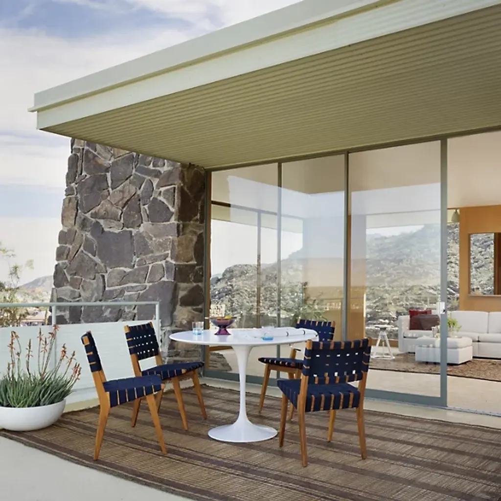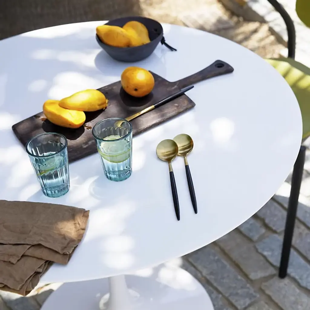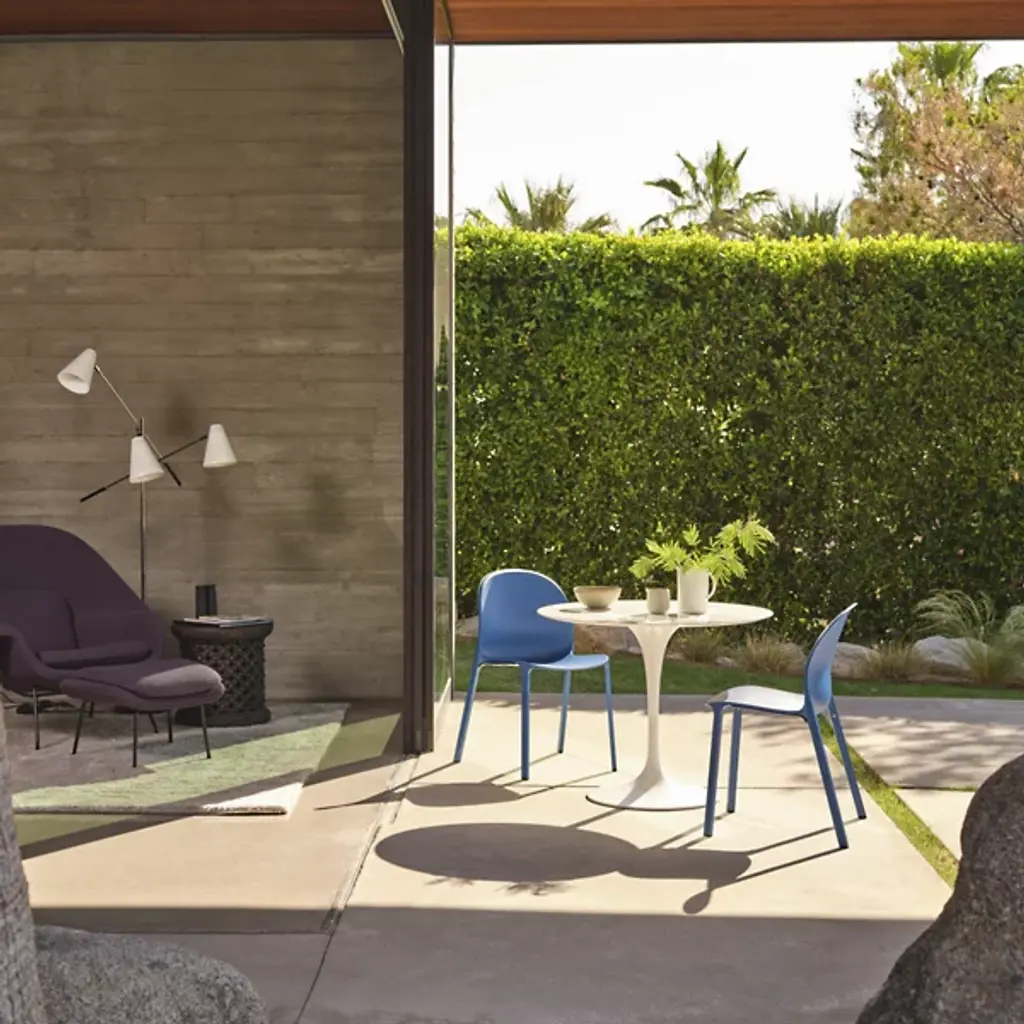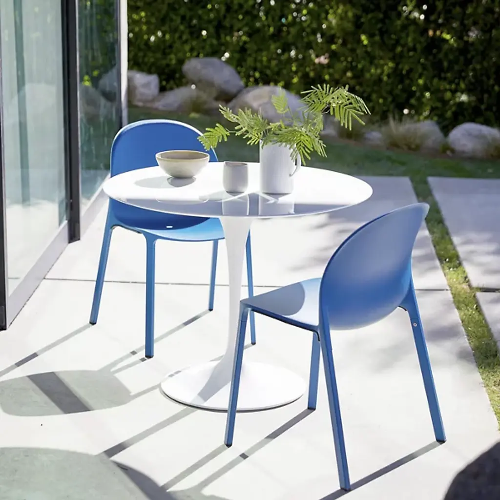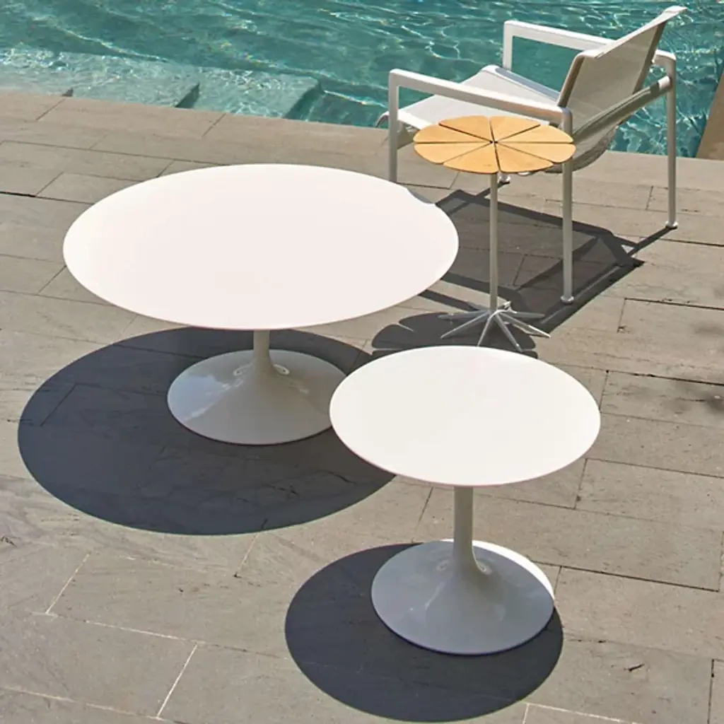 Since their debut in 1956, Eero Saarinen's 'Tulip' tables have been sought after by décor-savvy homeowners searching for the perfect balance between art and technology. The Saarinen Round Outdoor Dining Table by Knoll is a sleek addition to the collection, with an engineered-stone top designed to withstand the elements and a curvy pedestal base sculpted from lightweight, strong and durable aluminum. Available in 36, 42 and 54-inch sizes, it easily scales to any patio.