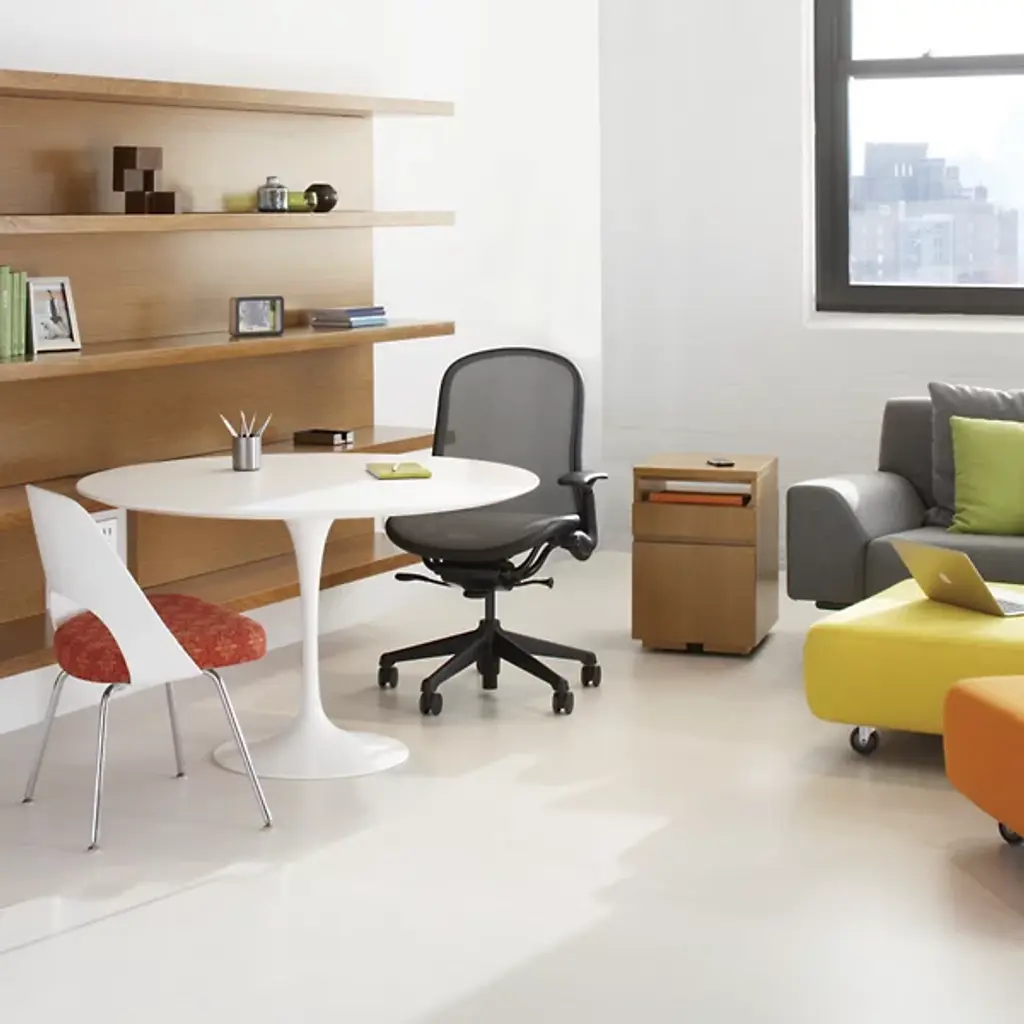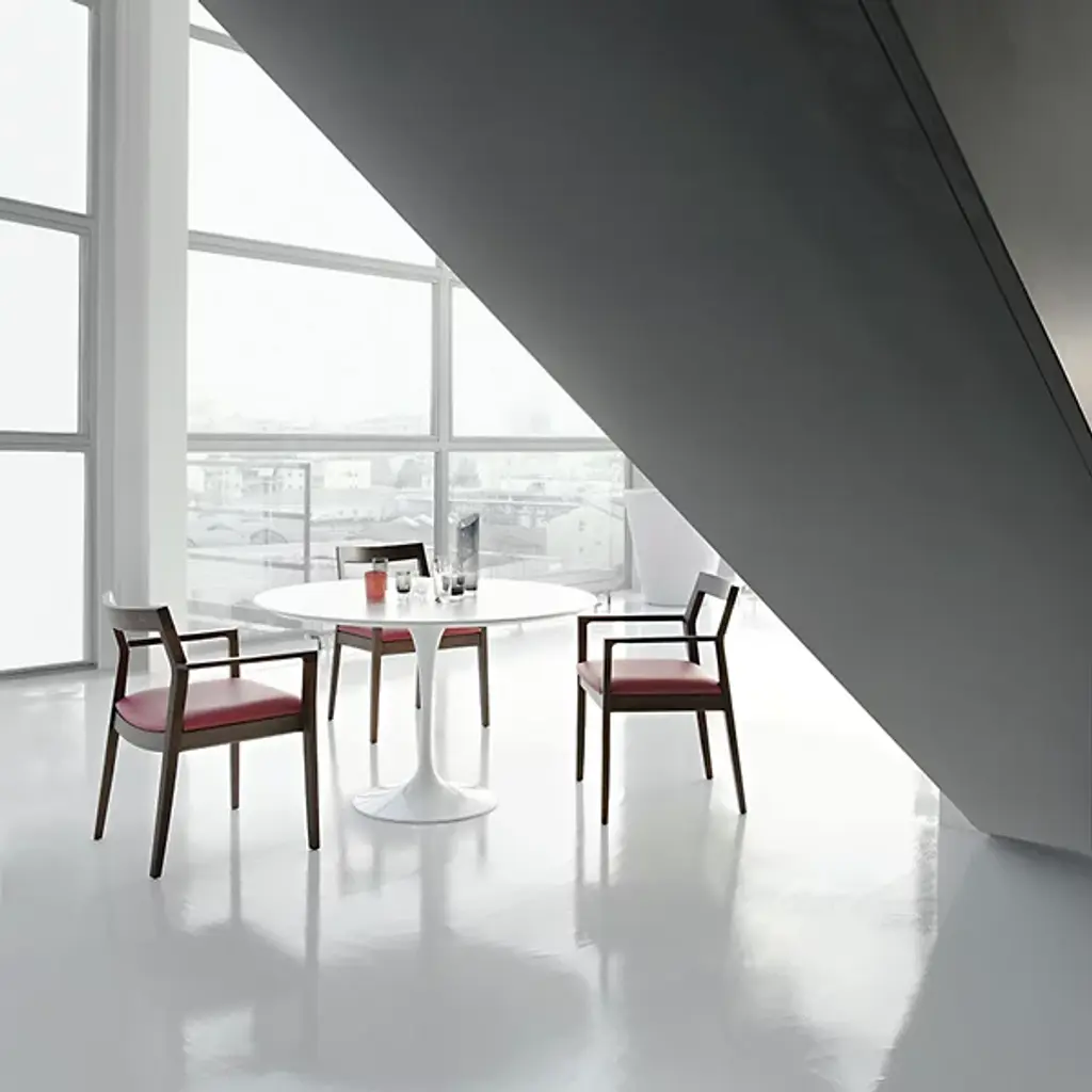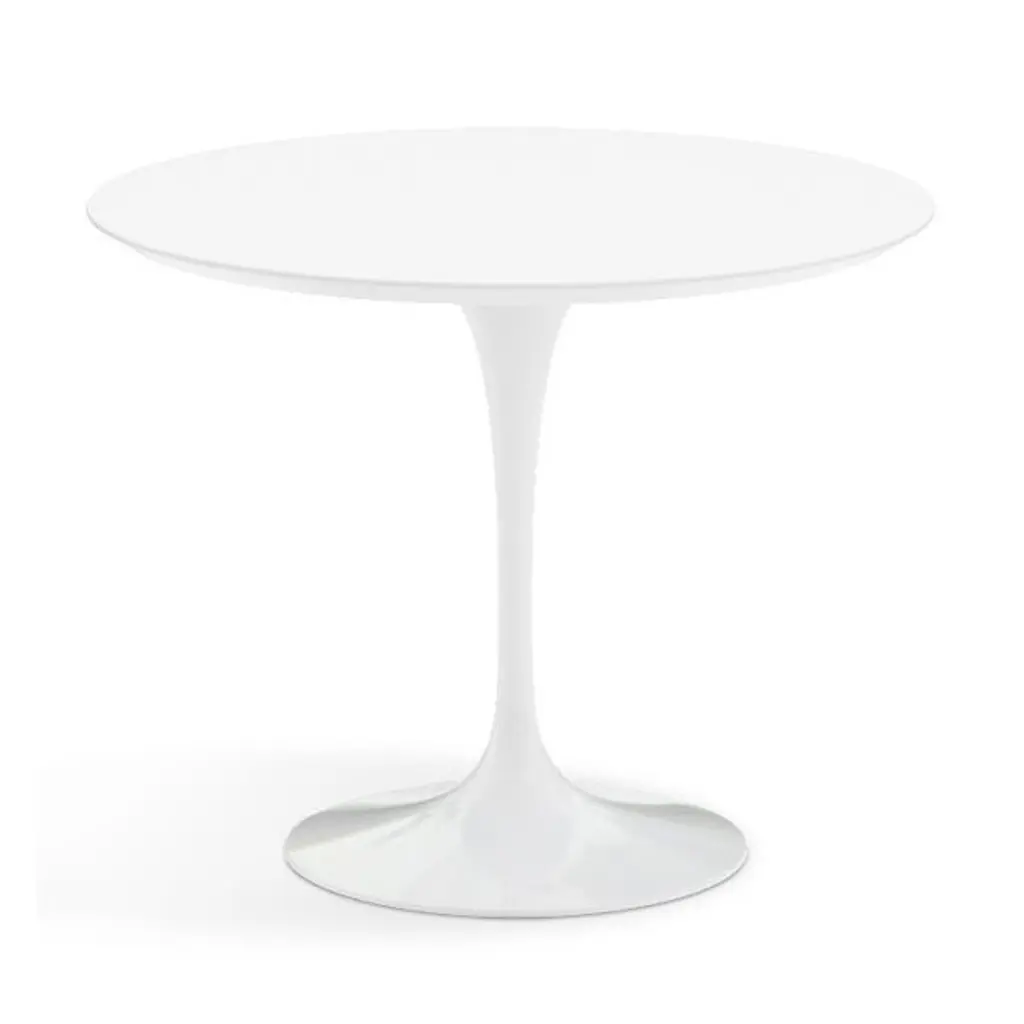 A timeless, iconic design. The Saarinen Round Dining Table from Knoll is an exceptional, high-end creation from world-renowned Finnish designer Eero Saarinen. This beautiful table was the result of Saarinen's desire to resolve the "ugly, confusion, unrestful world" beneath chairs and tables. Made of heavy molded cast aluminum, the base and body flow as a singular piece, rising and thinning into a graceful stem before slightly widening and upholding a firm, rounded top.