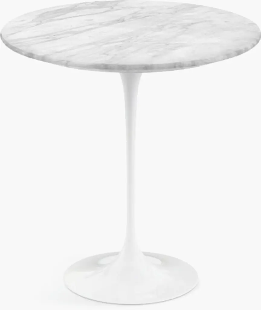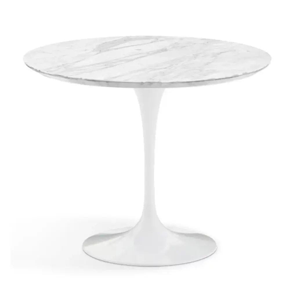 A timeless, iconic design. The Saarinen Round Dining Table from Knoll is an exceptional, high-end creation from world-renowned Finnish designer Eero Saarinen. This beautiful table was the result of Saarinen's desire to resolve the "ugly, confusion, unrestful world" beneath chairs and tables. Made of heavy molded cast aluminum, the base and body flow as a singular piece, rising and thinning into a graceful stem before slightly widening and upholding a firm, rounded top.