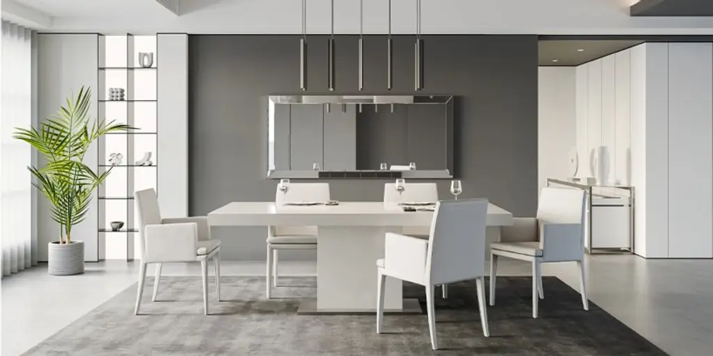 Make mealtimes even more memorable with our stunning Salerno Dining Table. Available in high-gloss white-lacquered wood or walnut-wood veneer, this bold, stately piece will be the focal point of your dining room with its clean, strong lines and sharp angles. It accommodates up to 8 people, making hosting a breeze.