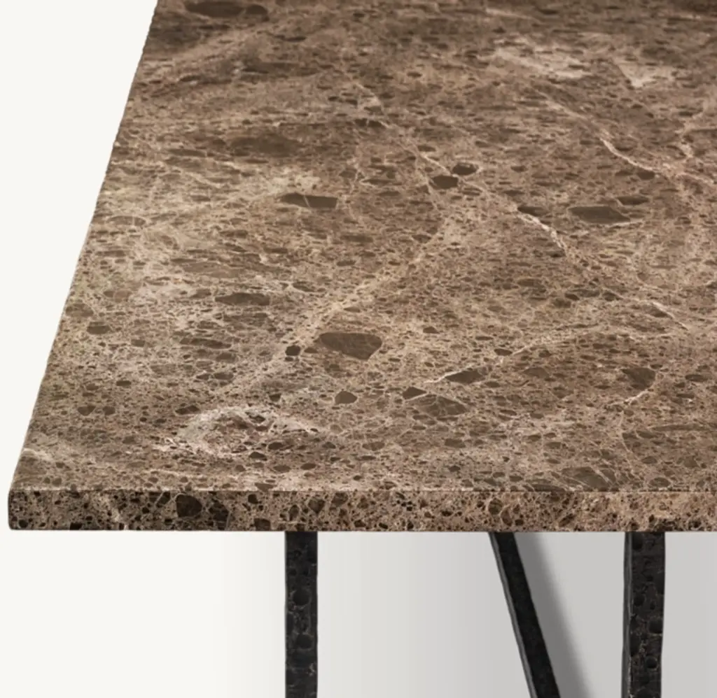 Designed by the Van Thiels, Salvador pays homage to the craftsmanship and refined sensibility that characterized 1940s French design. The frame is handcrafted from solid iron that is cast and hand-forged by artisans to create an organic texture with distinctive highs and lows. Each piece is paired with a natural stone top that is sandblasted for a weathered patina. SHOP THE ENTIRE COLLECTION