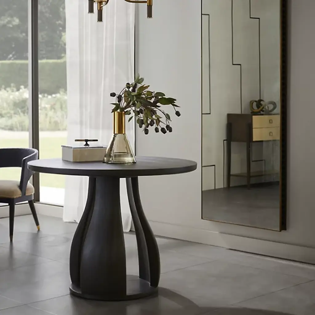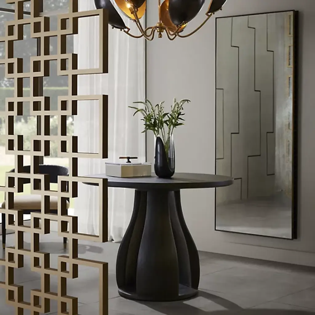 The Samara Dining Table is presented by Arteriors, a brand that responsibly sources pieces that blend the line between fine art and interior design. Boasting the ability to double as an entry table, it’s composed of rich mahogany in a lustrous ebony finish. On the practical side of the feature spectrum, it includes an adjustable leveler and can be lacquer-coated for additional protection in commercial settings.