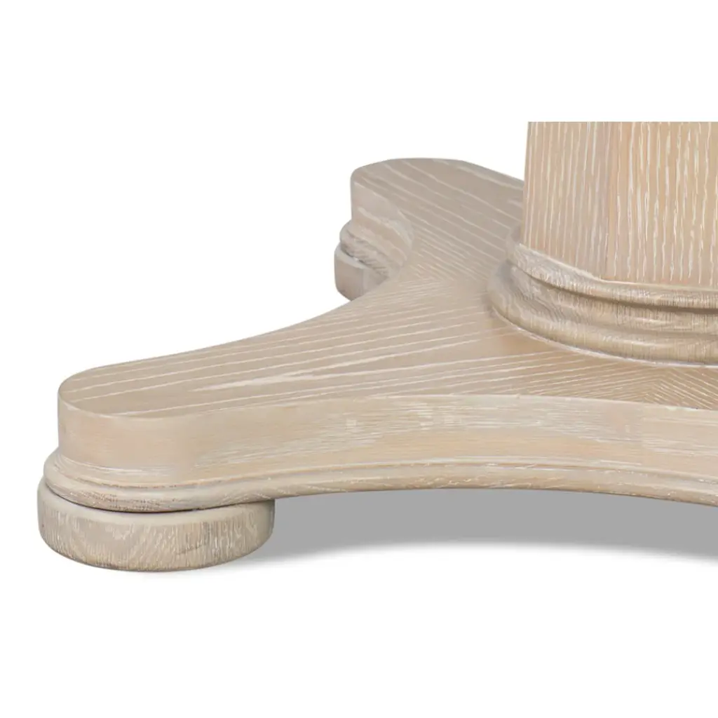 Plenty of legroom is afforded beneath this pedestal-base round dining table. Its' whitewashed finish with center star design will add an instant refresh to your dining space.