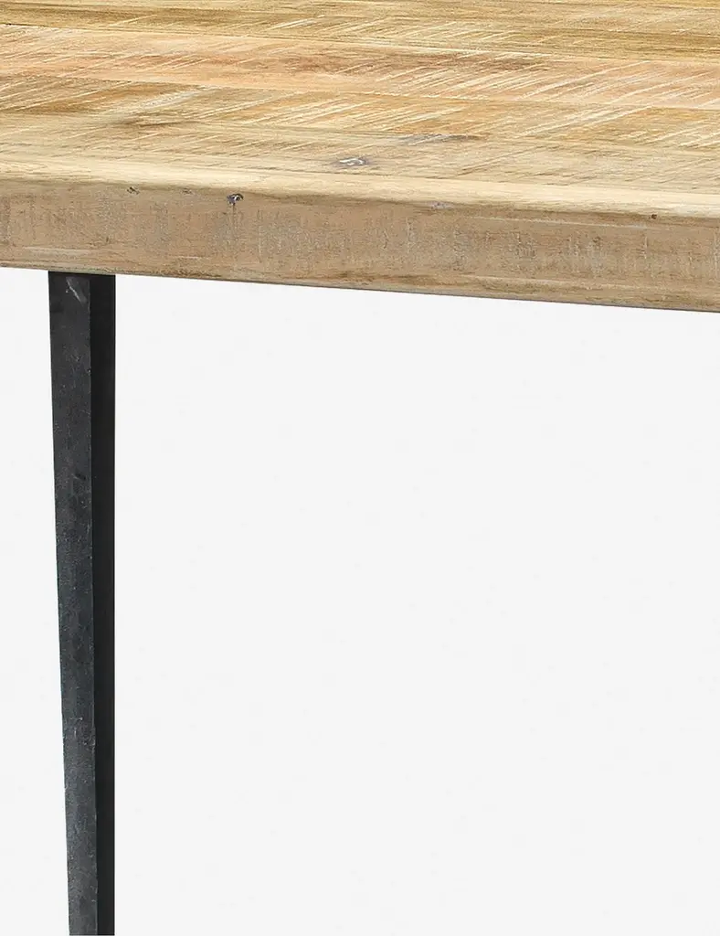 Your industrial farmhouse style just isn't complete without this dining table. The hand-worked wood tabletop adds plenty of craftsman appeal, while hammered antique legs bring a little modern contrast.
