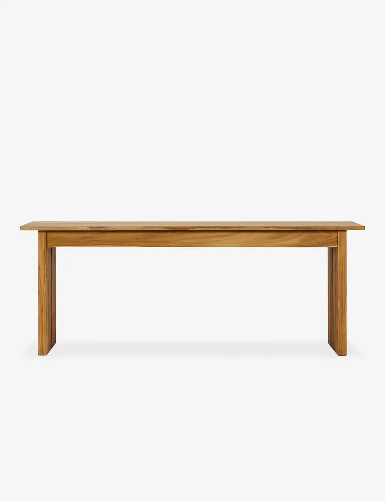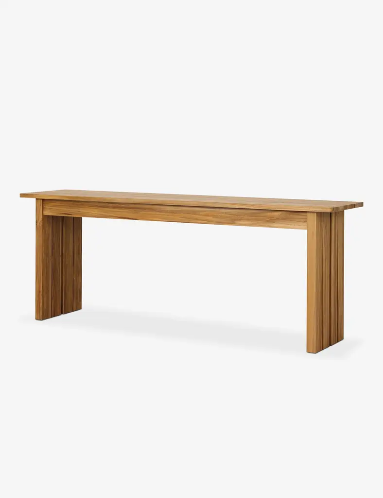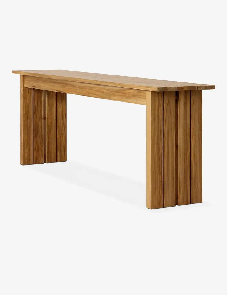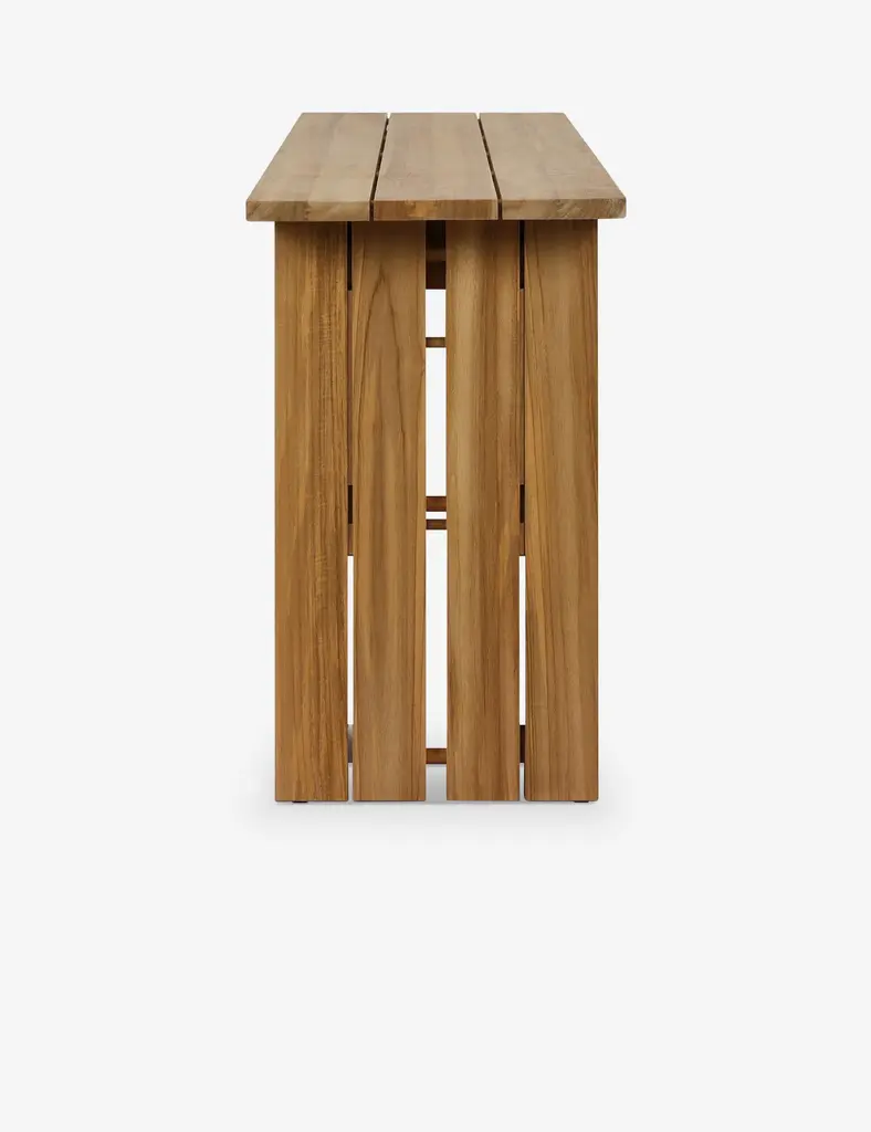 Add some surface space to a patio, terrace, or transitional area with this indoor/outdoor console table. The teak table receives a light finish, complementing the surrounding greenery on a patio or deck with a simple, rustic warmth. This piece offers versatility indoors or outtry styling as an entryway table or as a sideboard for al fresco dining.