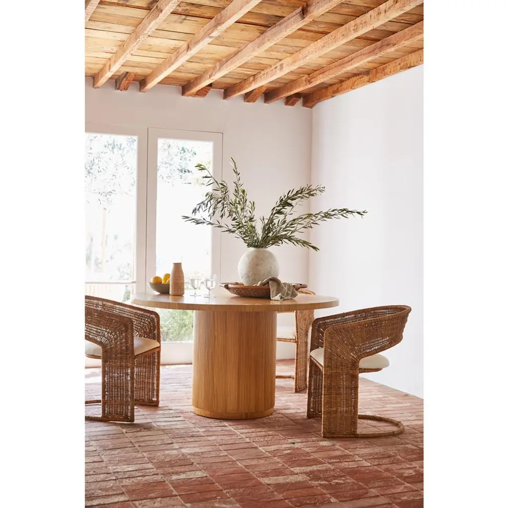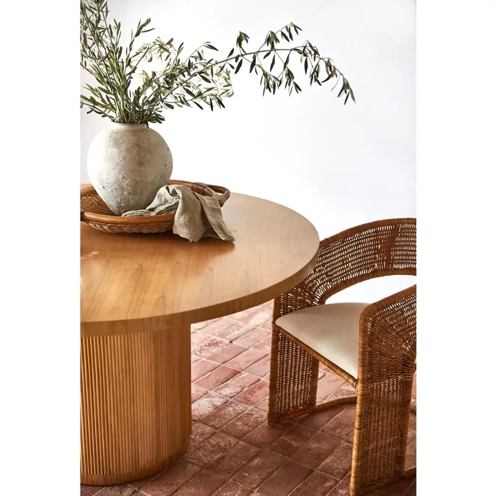 Sarah Coastal Beach Brown Rattan Round Dining Table - 54"w