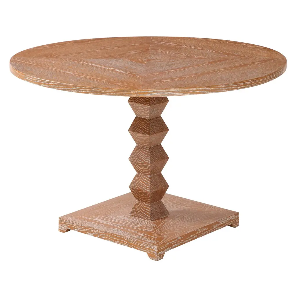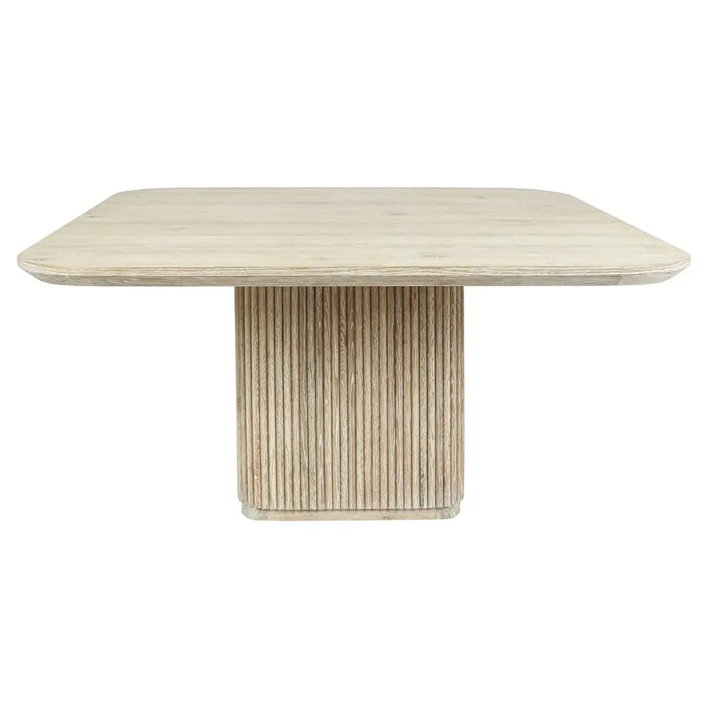 The wire-brushed and cerused finish on our Sayan Dining Table, which we call, highlights the wood grain on this oak dining table. Aimee Kurzner was thinking of the natural modern trend when she designed this family of products, which was inspired by her travels in Indonesia. We have a number of Sayan designs in natural and black finishes.