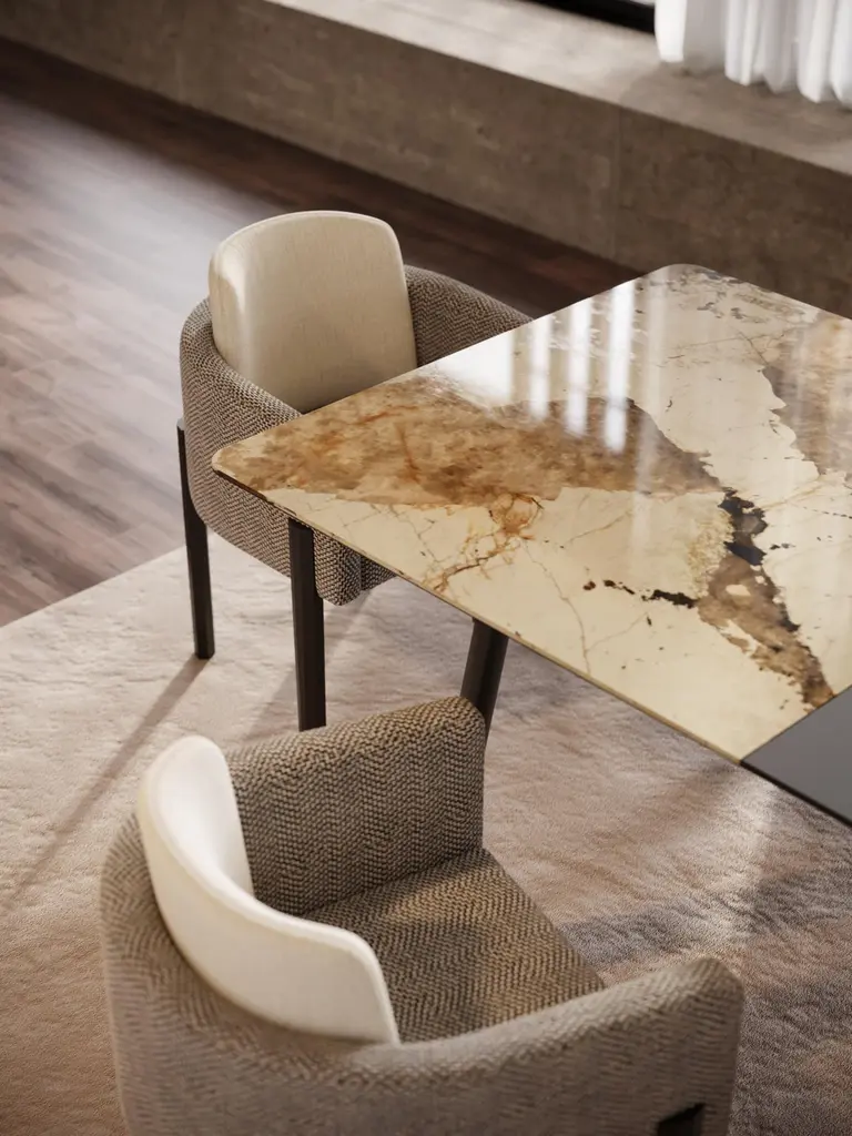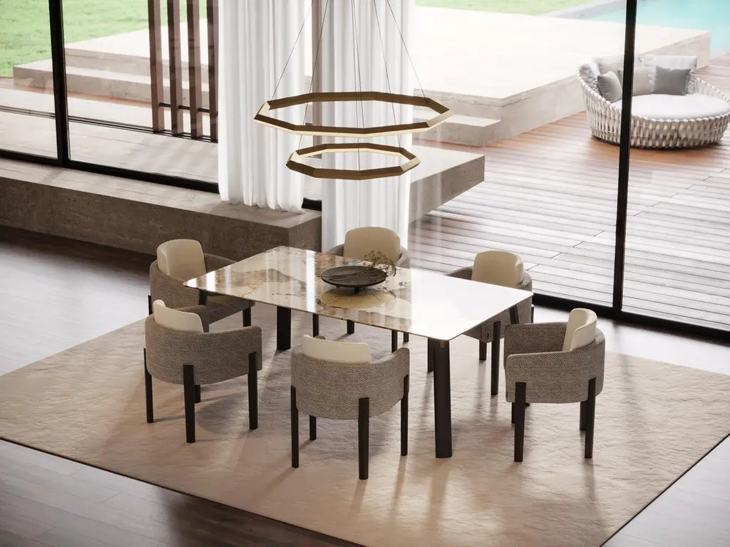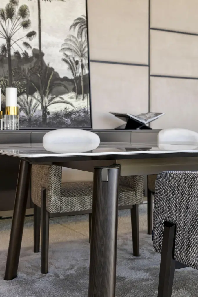 In a Haussmanian inspiration, you will find in this collection the noblest characteristics of this style. A discrete colour palette, between off-white and white, an avantgarde atmosphere that emphasises the nature of the materials, the simplicity of the designs and the sophistication of unlikely combinations. Our brand now arrives to bring out innovation, style and luxury in the most iconic design pieces.A piece that provides the best family moments, the Landform dining table adds sublime finesse to the dining room. With an oak wood structure and a polished ceramic dekton top, this piece completes the Landform collection in an exclusive and luxurious aura. A dining table with a subtlety of details, the Landform dining table affirms an irreverent but discreet look that makes possible an intimate and sophisticated dining room. The space of unforgettable meals, the Landform dining table assumes a unique conviviality area, harmoniously combining with the rest of the decoration the dining room. As the product can be personalised, the image of the presentation is merely illustrative.NotesLacquered metal or other metals - Price on requestPossibility of marble and glass tops - Price on request.