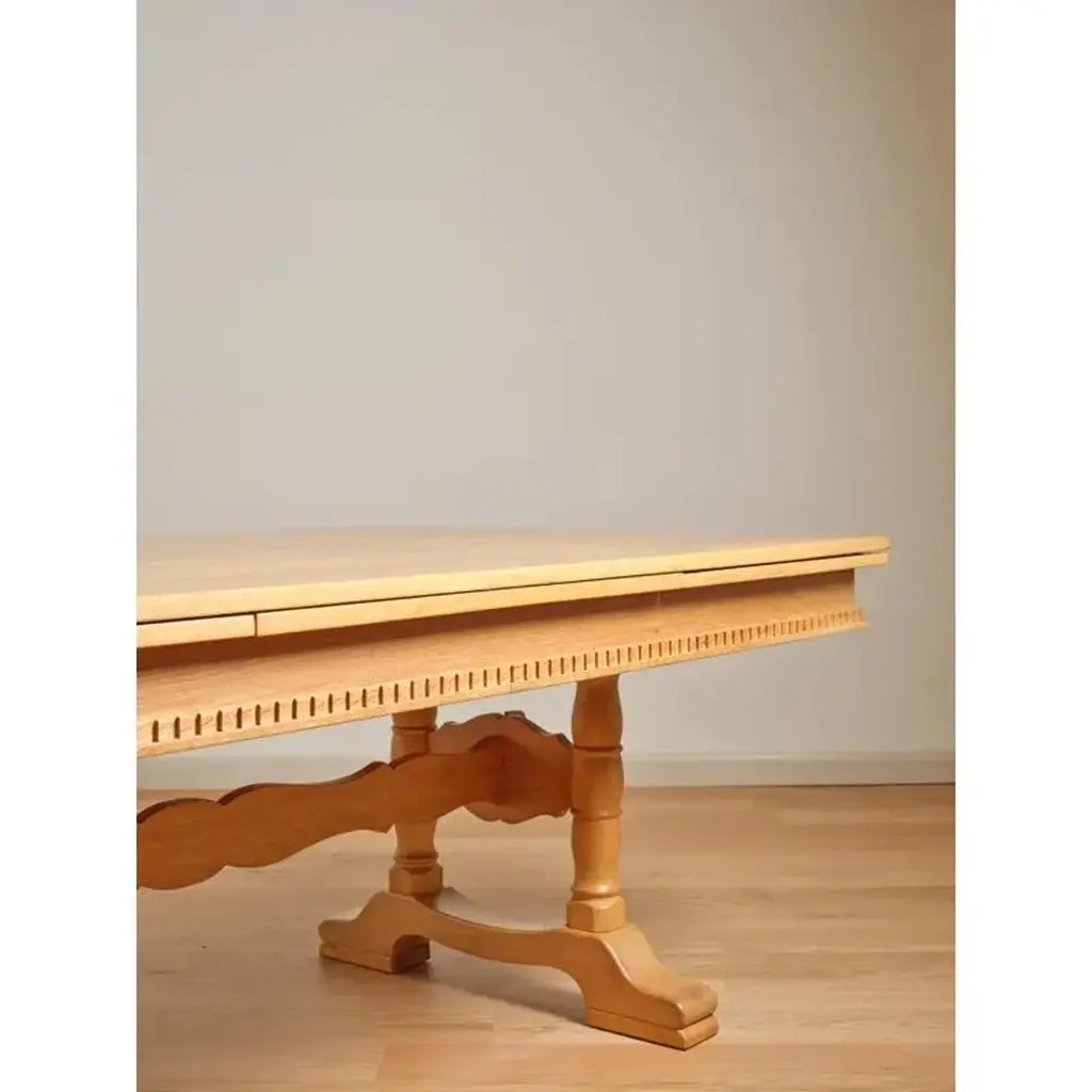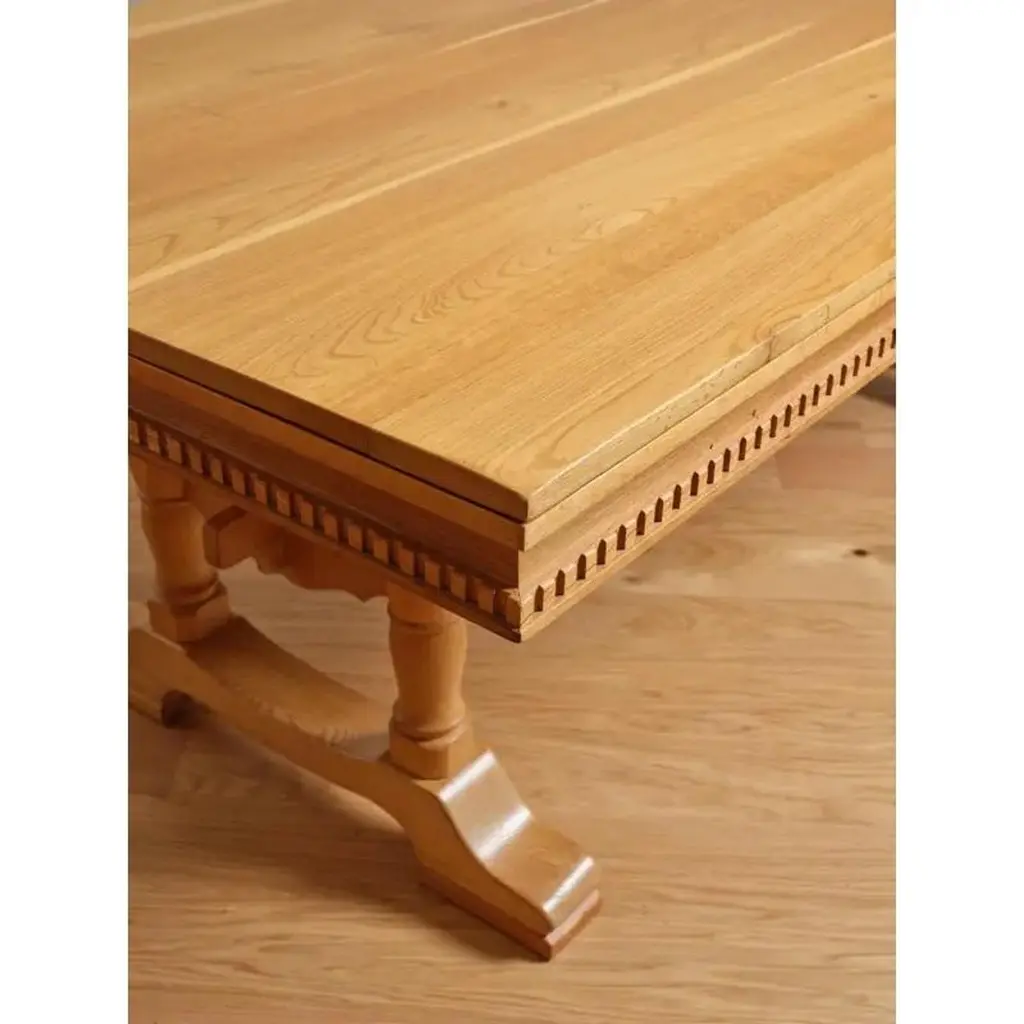 Beautiful dining table of substantial proportions, with (2) hidden draw-leaves stored beneath the tabletop. Late 20th Century.With (2) hidden draw-leaves (24.5" each) stored beneath the tabletop. Late 20th Century.