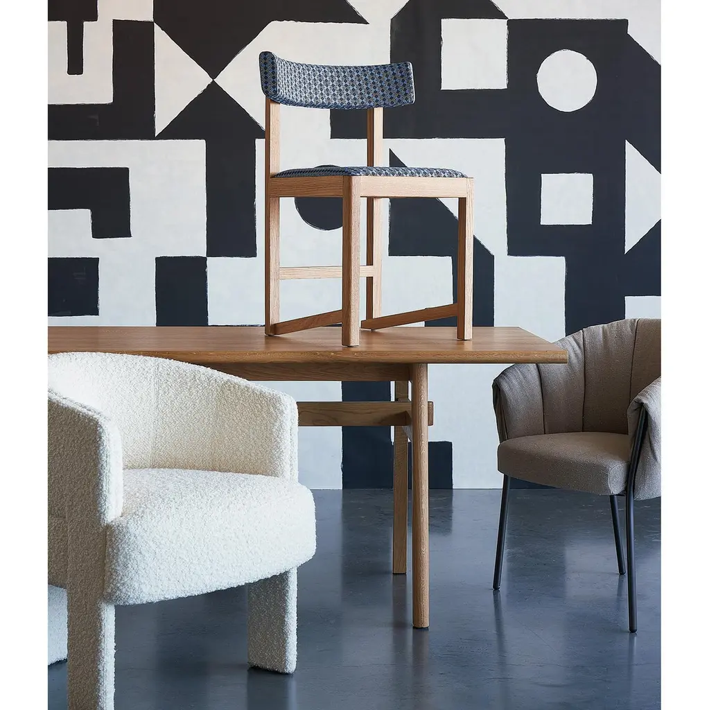 Finished to highlight the naturally beautiful qualities of solid oak, the Mokki Dining Table was designed by Salla Luhtasela and Wesley Walters of Finland’s Studio Kaksikko. Its modernist details nod to midcentury design, while clean, uncomplicated lines evoke the relaxed mood of Finnish summer cottages. Meticulously handcrafted in Italy, this table’s elegant economy of design belies its lasting construction. Available in a wide width and a range of finishes. Part of our Schumacher Editions Dining Collection.