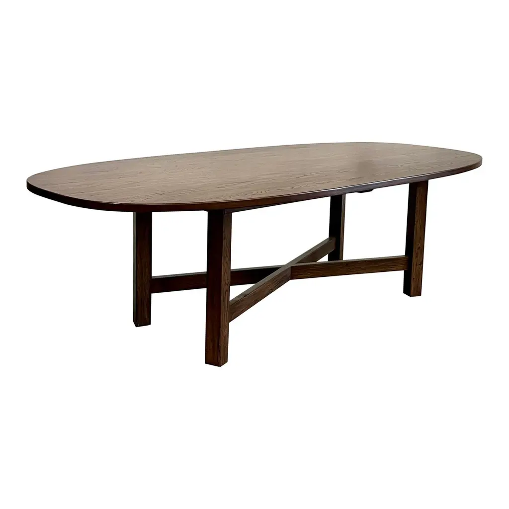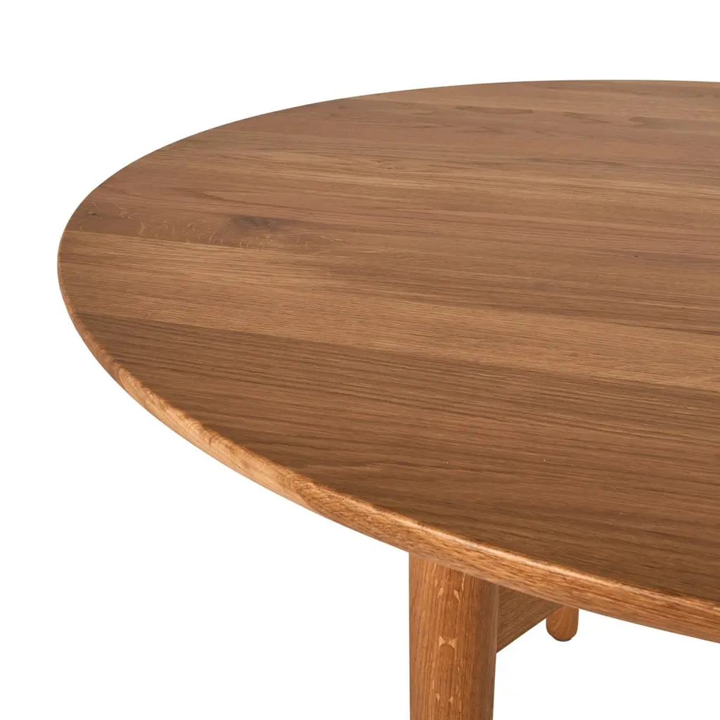 Elegantly beveled to give the solid oak construction a pure and light appearance, the Puffin Dining Table’s elliptical top is the perfect marriage of form and function. Designed in Denmark by Charlotte Høncke and meticulously handcrafted in Italy, this table features inset legs braced with surprising Y-shaped stretchers that allow every chair to be pulled in close for cozy gatherings. Part of our Schumacher Editions Dining Collection.