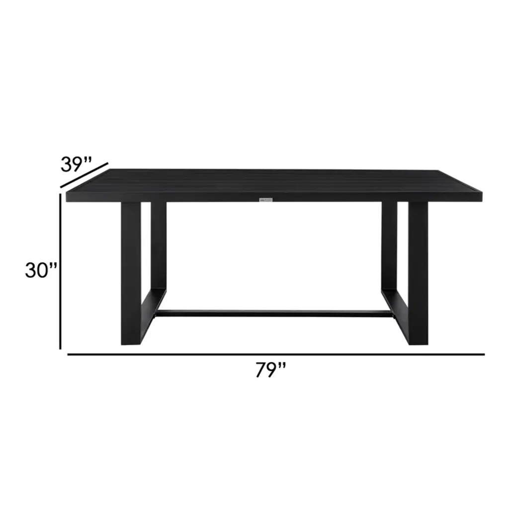Elevate your outdoor gatherings with this sleek and modern patio table. Crafted from sturdy aluminum and finished in sleek black, it brings a touch of modern sophistication to any outdoor space. With ample surface area, it's perfect for hosting meals or displaying decor. This table seats a crowd, so gather some friends.