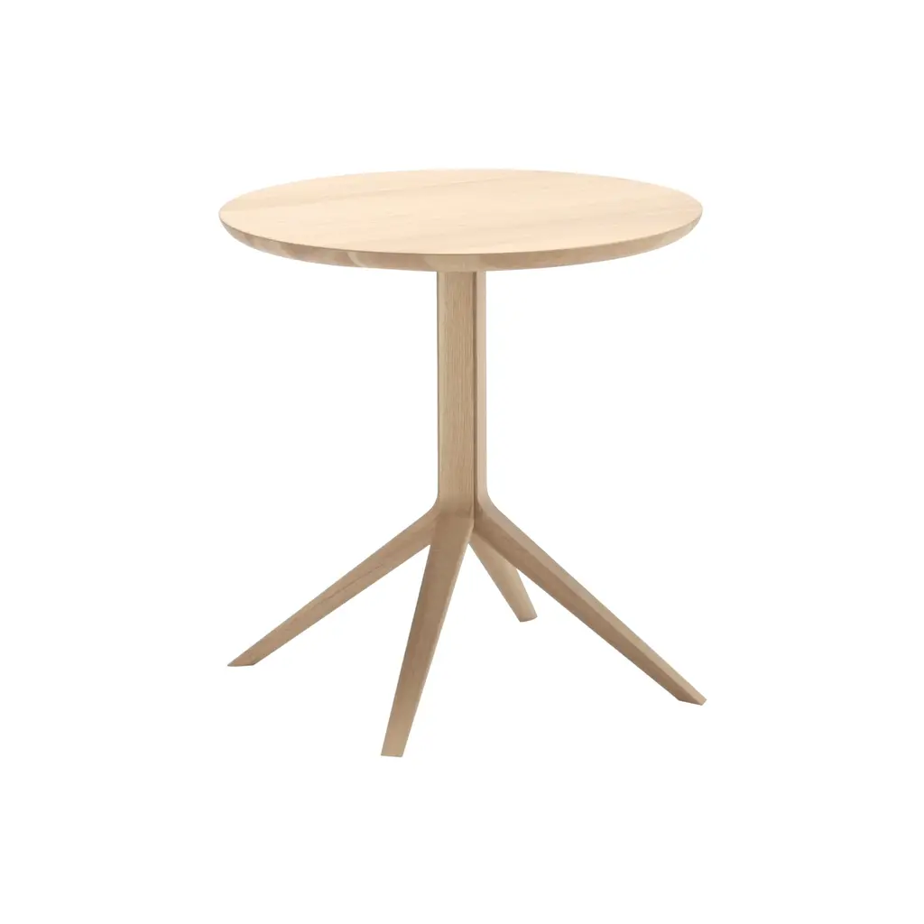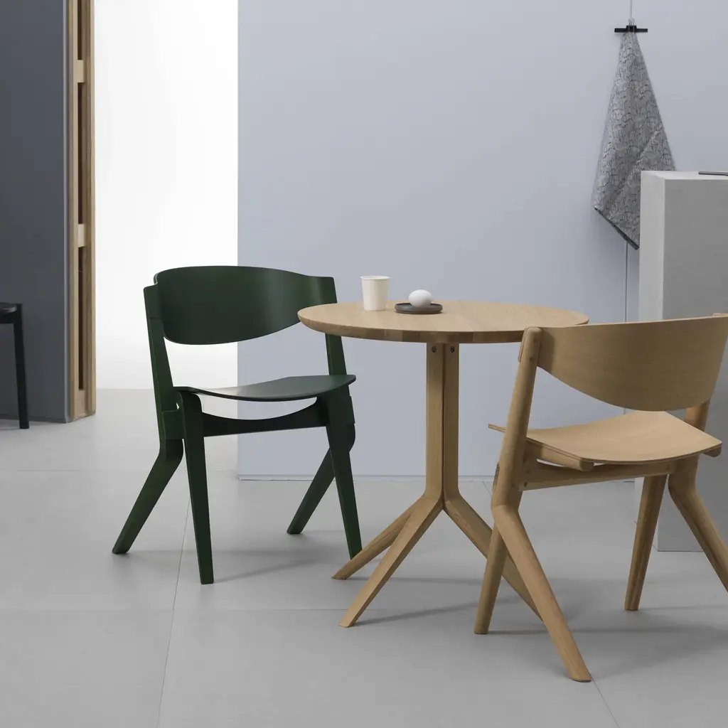 Scout's angled base plays on the similarly shaped chair from Karimoku New Standard, both fashioned in sustainably sourced Japanese oak. German designer Christian Haas' compact bistro table comes in Dining height standard, for dining; bar, for pairing with high stools; and low, for use as a sofa table or to complement lounge seating. Scout is an elegantly simple but hardwearing choice for high-traffic areas, with the tabletop attached to the center post with a sturdy steel fixture. And the bar-height version even has 4 underneath hooks for hanging bags, making it an especially apt option for cafes, hotels and public spaces.
