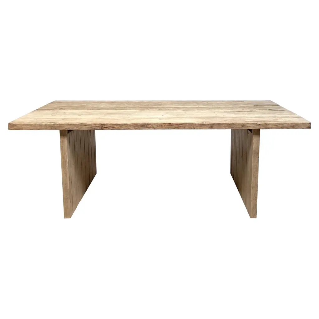 Dining table of solid oak (+ linseed oil)(Outdoor use OK)SÓHA design studio conceives and produces furniture design and decorative objects in solid oak in an authentic style. Inspiration to create all these items comes from the Russian North aesthetics with its severe nature, log huts black from time and climate and scant patterns. Wood is masterfully hand processed with chainsaw or chisel, whereby producing beautiful surface patterns. The wood is soaked in boiling baths of linseed oil, creating this special patina and making each creation a very unique piece. Reacting with tanning substances under high temperature, oil gives the objects expressive and natural colours, from light brown to charcoal-black. SÓHA offers a vast array of neo-primitivist interior objects. Our kitchen utensil, wall panels, sculptures and furniture solutions are executed in one unique style and will organically fit into the interior of your home. Each piece is one-of-a-kind handmade product.Unique piece made to order.
