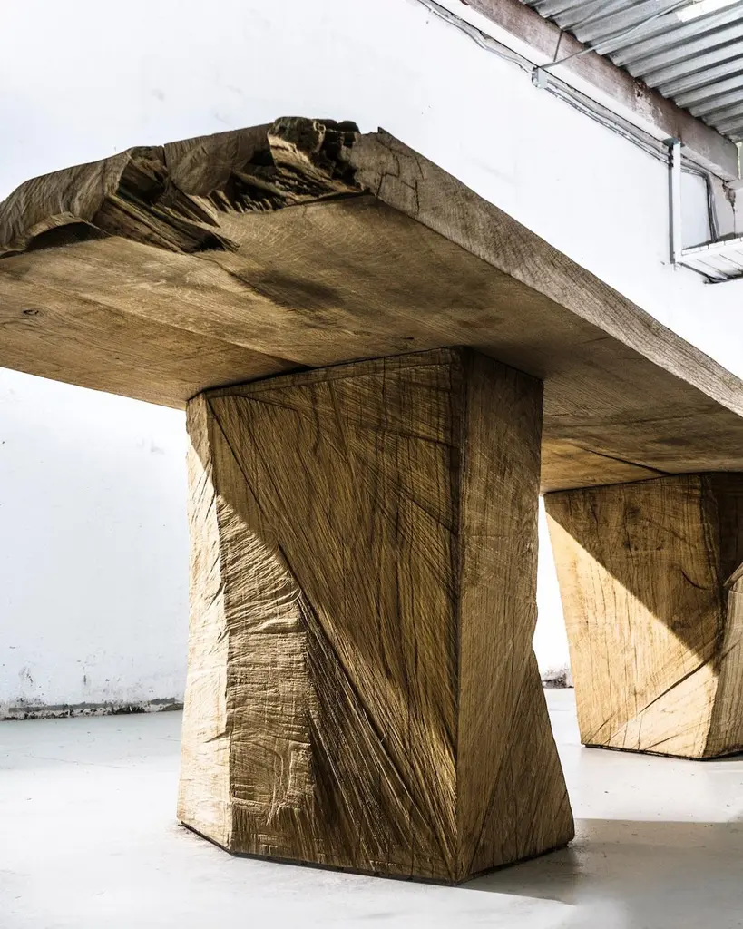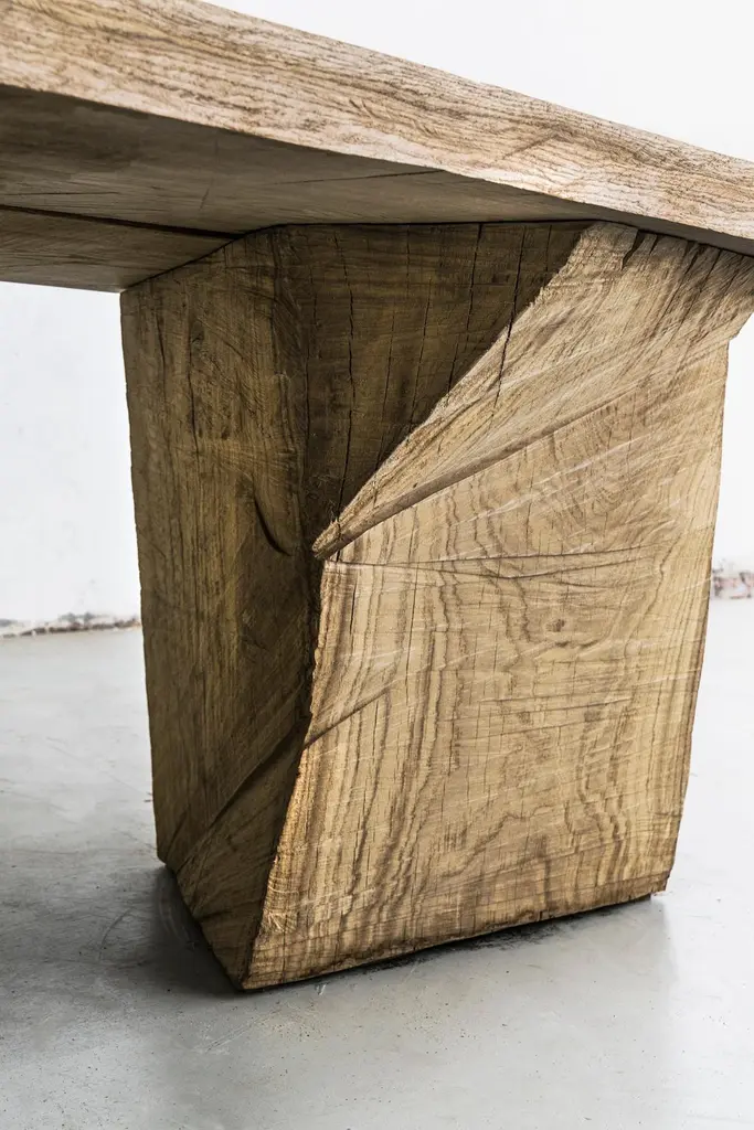 Sculpted Massive Dining Table In Solid Oakwood 'Custom Size'