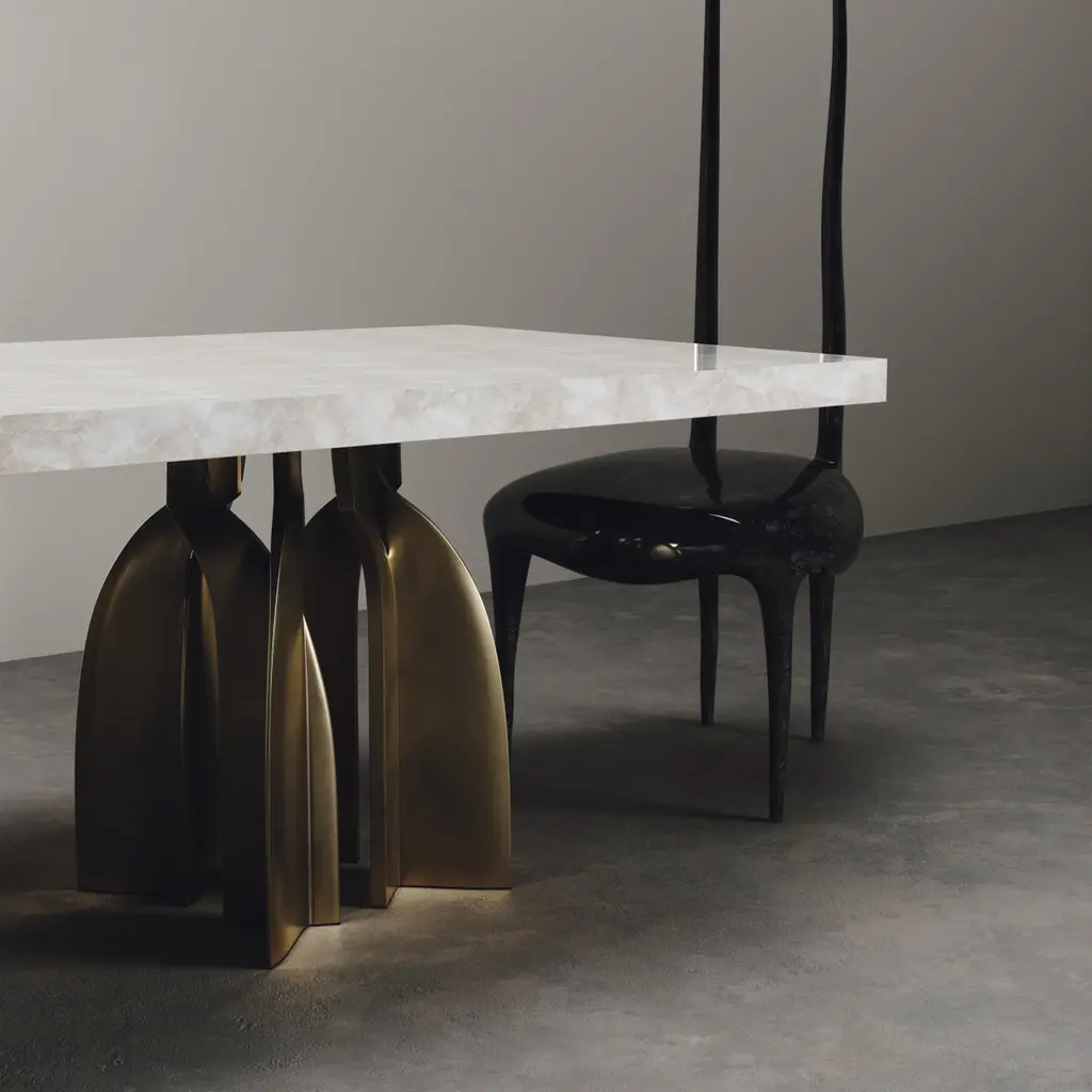 Sculptural Dining Table In Shell & Bronze Patina Brass By Kifu Paris