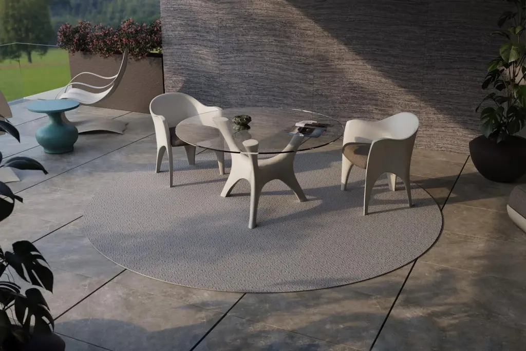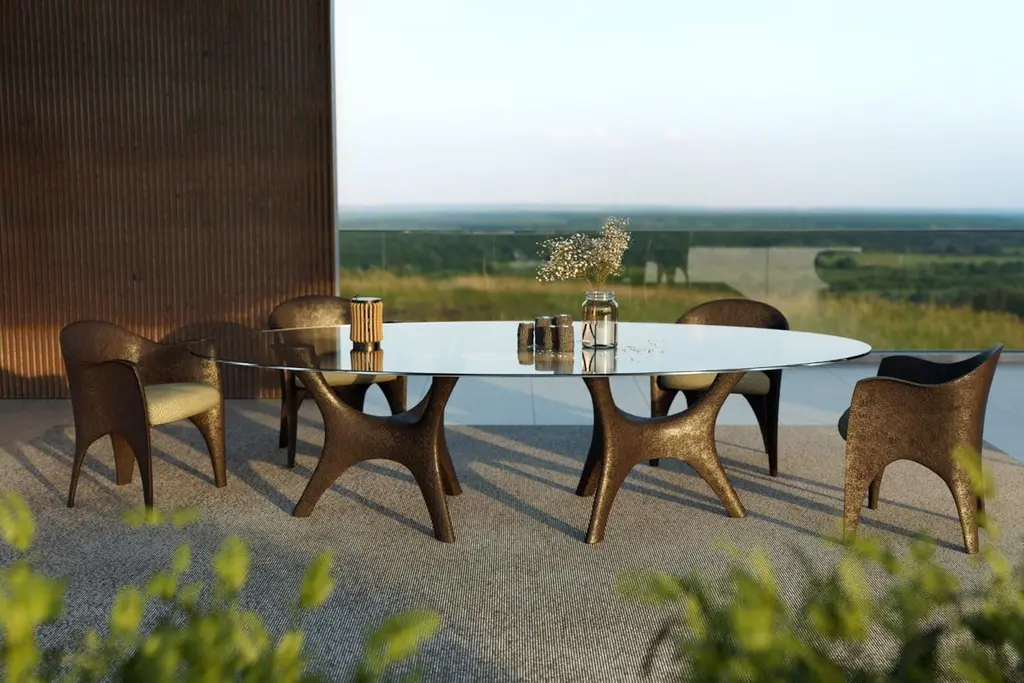 Sculptural Indoor/outdoor Dining Table With Glass Top