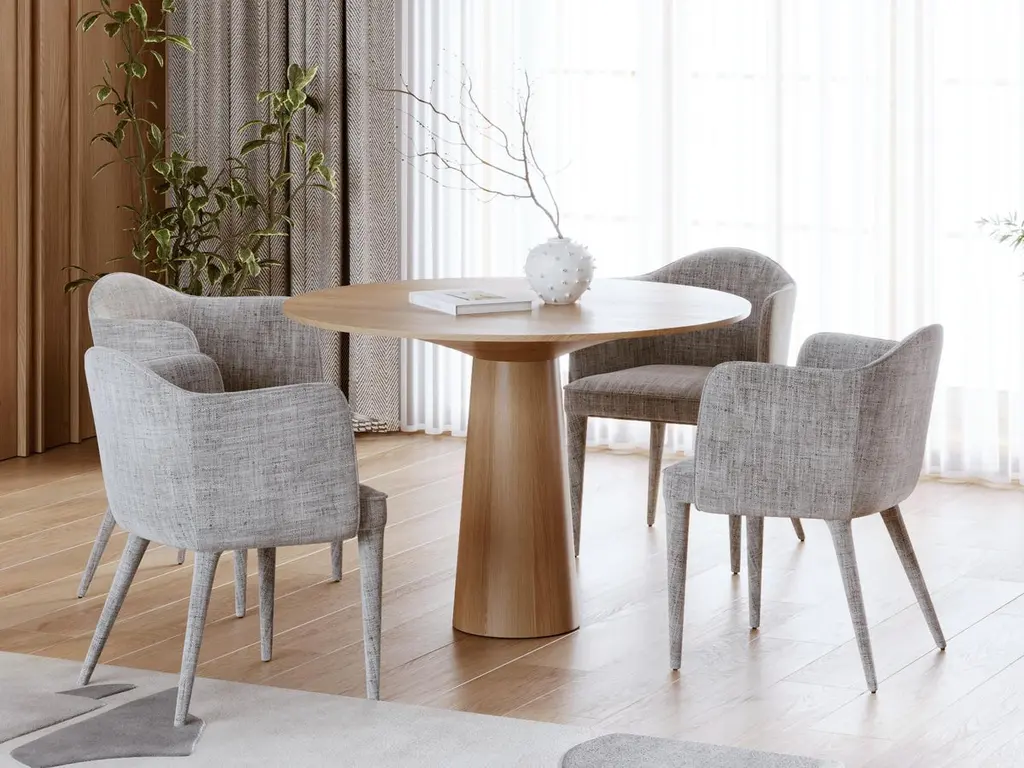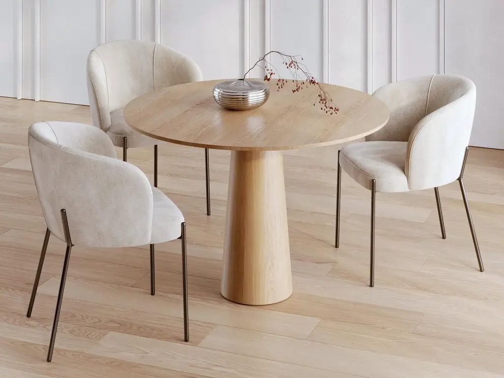 Handcrafted from solid European oak, this round dining table combines sculptural simplicity with rawmaterial honesty. Its thick top and balanced silhouette reflect both brutalist restraint and naturalwarmth. The oak is carefully selected, dried, and shaped to preserve knots, texture, and organictension - each table carries a unique soul, shaped by both nature and the artisan's hand.Perfect for interiors where presence matters more than perfection.