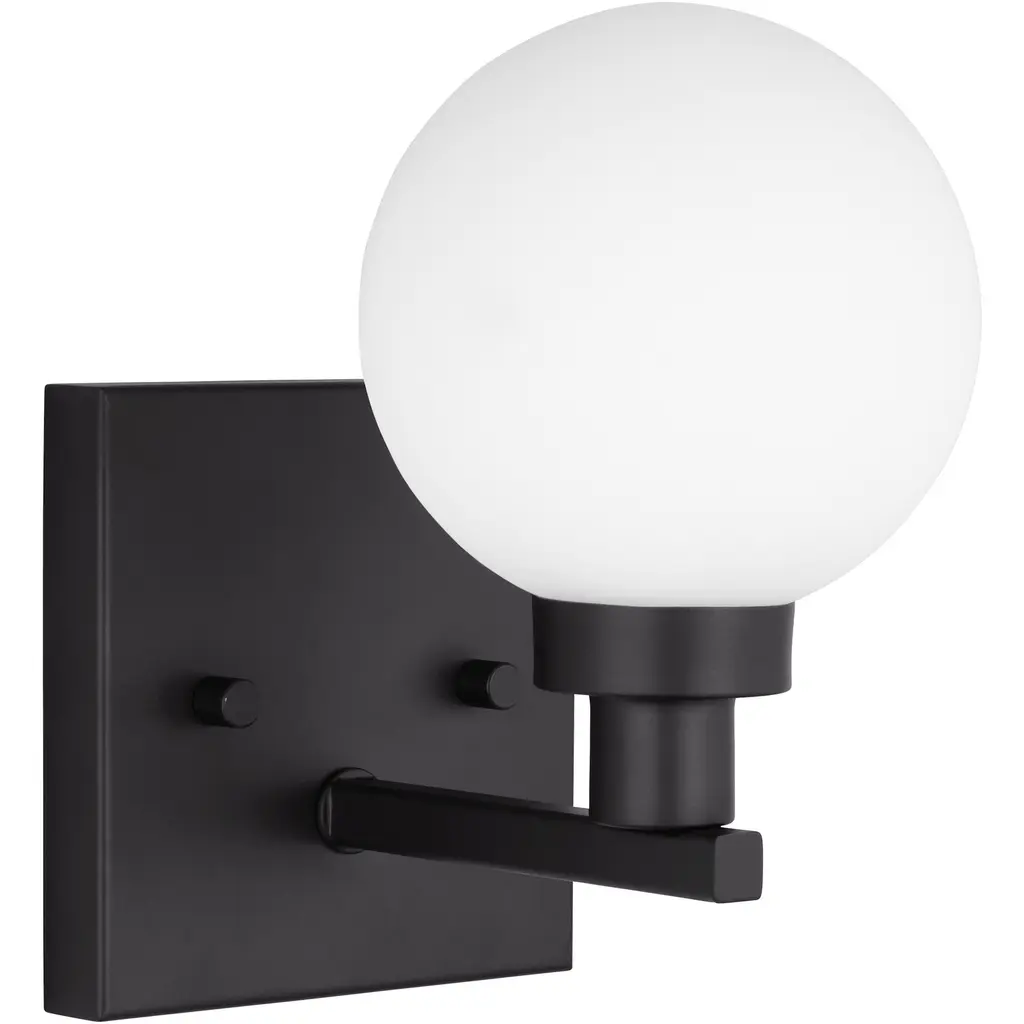 The Clybourn one light wall sconce in Midnight Black is an industrial yet minimalist design, making this fixture perfect for an eclectic living room or over a modern dining room table. Milk Glass gives the Clybourn series a more current look.