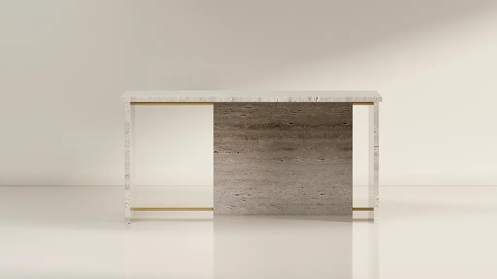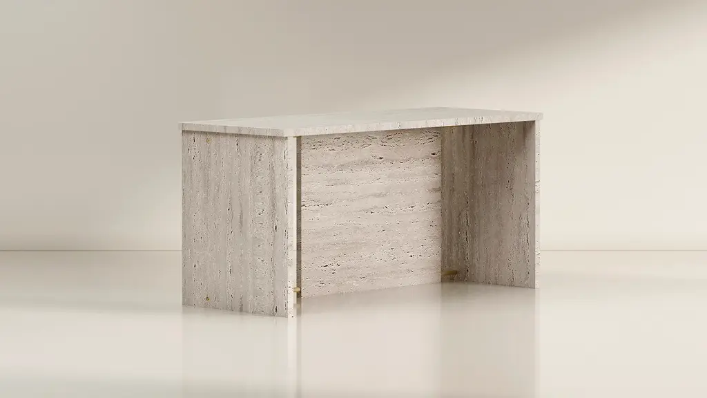 Simple, geometric planes combine in unexpected ways to create sculptural, yet functional forms. The TRNK Collection expands into new forms and materialities with the addition of the Segment Table Series. “The process for designing the Segment Series was reductive. I asked, how can we simplify these forms to make a dense material like solid stone feel a bit lighter? That's how the small gaps between adjoining slabs, which now define the collection, came about. I also considered how light interacts with the product, allowing the occasional ray to peer through the slivers of negative space." - Tariq Dixon, Designer For bringing this collection to life, we turned to Portugal - a country with a centuries-old history of stone artisanship. Each table is made-to-order using thick, solid slabs of raw travertine or honed stone and marble combined with metal rods for material contrast and unyielding structural support. We've added extra extra strength and support through aluminum insert construction, making the pieces lighter and less damage prone. (Please note, raw travertine has open pores, giving it an organic, textural surface. The dining table ships as disassembled components; however, our In-Home delivery service includes assembly.) Made from the finest quality materials and construction, the Segment Tables will gracefully age as timeless heirlooms. Note: This table should not be moved while assembled. White Glove services are required for any disassembly and reassembly.