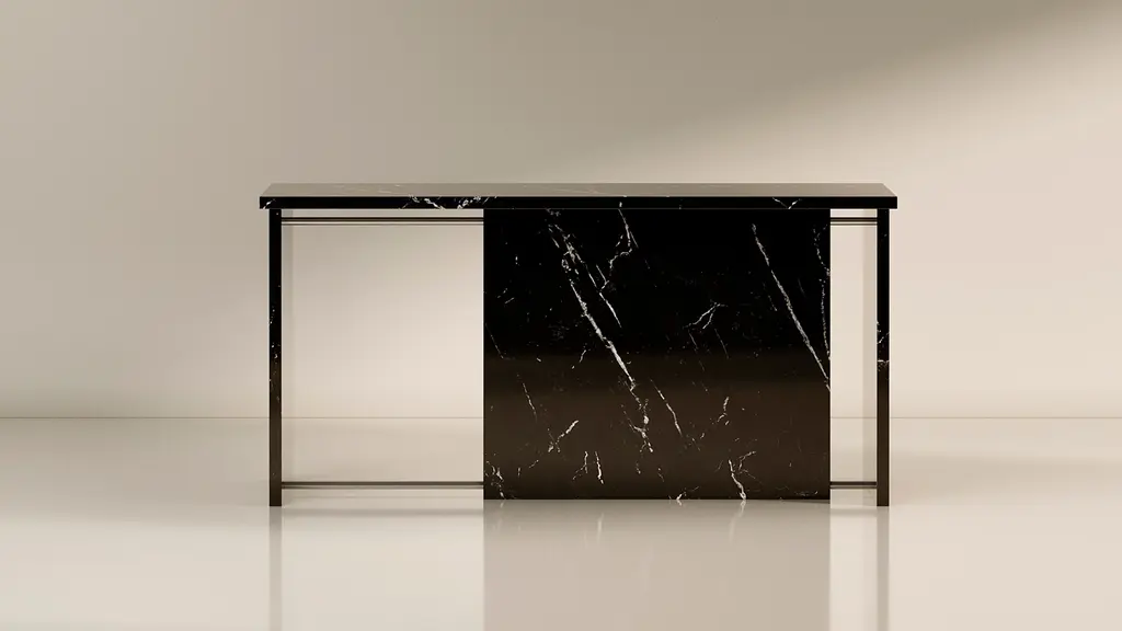 Simple, geometric planes combine in unexpected ways to create sculptural, yet functional forms. The TRNK Collection expands into new forms and materialities with the addition of the Segment Table Series. “The process for designing the Segment Series was reductive. I asked, how can we simplify these forms to make a dense material like solid stone feel a bit lighter? That's how the small gaps between adjoining slabs, which now define the collection, came about. I also considered how light interacts with the product, allowing the occasional ray to peer through the slivers of negative space." - Tariq Dixon, Designer For bringing this collection to life, we turned to Portugal - a country with a centuries-old history of stone artisanship. Each table is made-to-order using thick, solid slabs of raw travertine or honed stone and marble combined with metal rods for material contrast and unyielding structural support. We've added extra extra strength and support through aluminum insert construction, making the pieces lighter and less damage prone. (Please note, raw travertine has open pores, giving it an organic, textural surface. The dining table ships as disassembled components; however, our In-Home delivery service includes assembly.) Made from the finest quality materials and construction, the Segment Tables will gracefully age as timeless heirlooms. Note: This table should not be moved while assembled. White Glove services are required for any disassembly and reassembly.