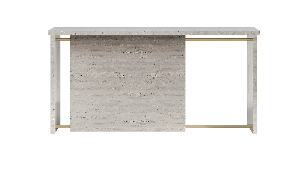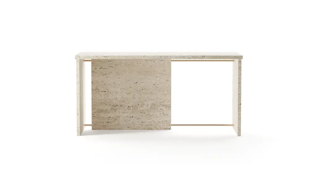 Simple, geometric planes combine in unexpected ways to create sculptural, yet functional forms. The TRNK Collection expands into new forms and materialities with the addition of the Segment Table Series. “The process for designing the Segment Series was reductive. I asked, how can we simplify these forms to make a dense material like solid stone feel a bit lighter? That's how the small gaps between adjoining slabs, which now define the collection, came about. I also considered how light interacts with the product, allowing the occasional ray to peer through the slivers of negative space." - Tariq Dixon, Designer For bringing this collection to life, we turned to Portugal - a country with a centuries-old history of stone artisanship. Each table is made-to-order using thick, solid slabs of raw travertine or honed stone and marble combined with metal rods for material contrast and unyielding structural support. We've added extra extra strength and support through aluminum insert construction, making the pieces lighter and less damage prone. (Please note, raw travertine has open pores, giving it an organic, textural surface. The dining table ships as disassembled components; however, our In-Home delivery service includes assembly.) Made from the finest quality materials and construction, the Segment Tables will gracefully age as timeless heirlooms. Note: This table should not be moved while assembled. White Glove services are required for any disassembly and reassembly.