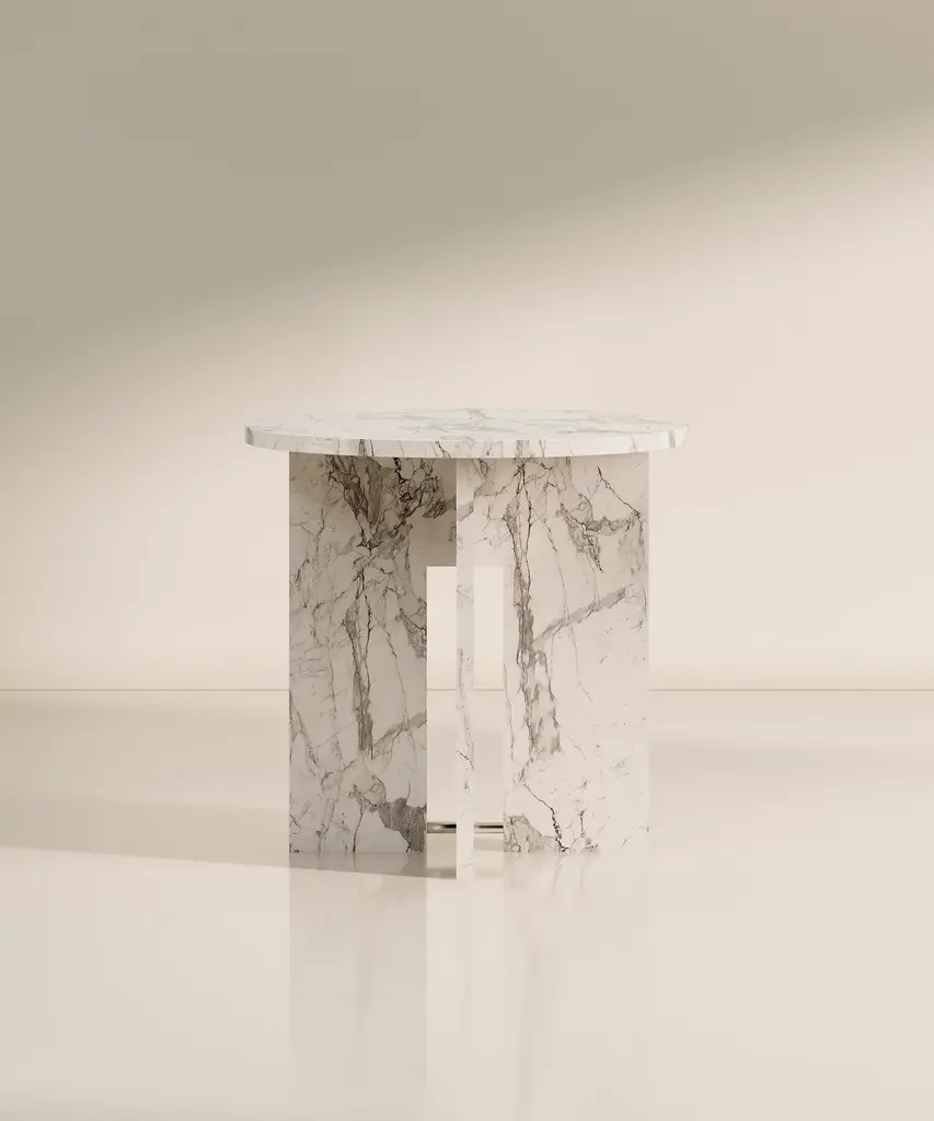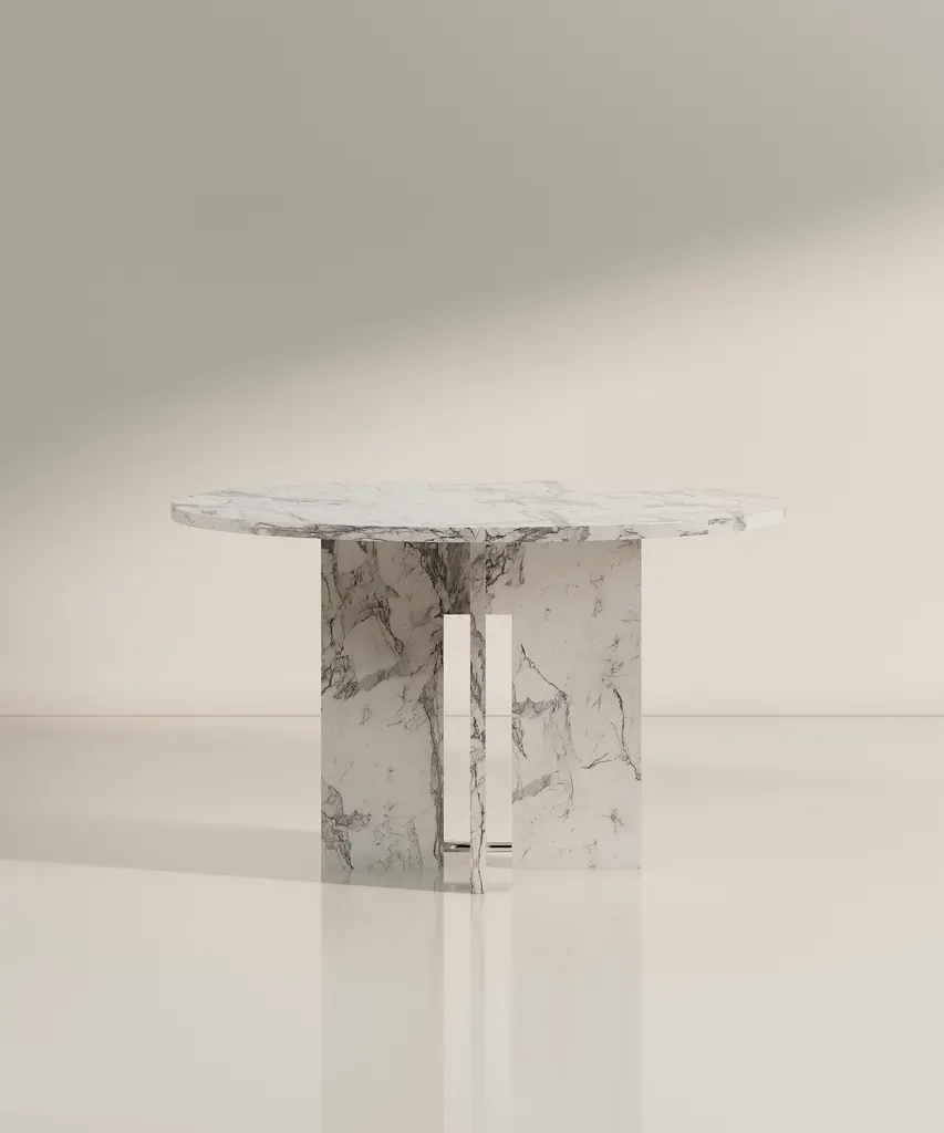 Simple, geometric planes combine in unexpected ways to create sculptural, yet functional forms. The TRNK Collection expands into new forms and materialities with the addition of the Segment Table Series. “The process for designing the Segment Series was reductive. I asked, how can we simplify these forms to make a dense material like solid stone feel a bit lighter? That's how the small gaps between adjoining slabs, which now define the collection, came about. I also considered how light interacts with the product, allowing the occasional ray to peer through the slivers of negative space." - Tariq Dixon, Designer For bringing this collection to life, we turned to Portugal - a country with a centuries-old history of stone artisanship. Each table is made-to-order using thick, solid slabs of raw travertine or honed stone and marble combined with metal rods for material contrast and unyielding structural support. We've added extra extra strength and support through aluminum insert construction, making the pieces lighter and less damage prone. (Please note, raw travertine has open pores, giving it an organic, textural surface. The dining table ships as disassembled components; however, our In-Home delivery service includes assembly.) Made from the finest quality materials and construction, the Segment Tables will gracefully age as timeless heirlooms. Note: This table should not be moved while assembled. White Glove services are required for any disassembly and reassembly.
