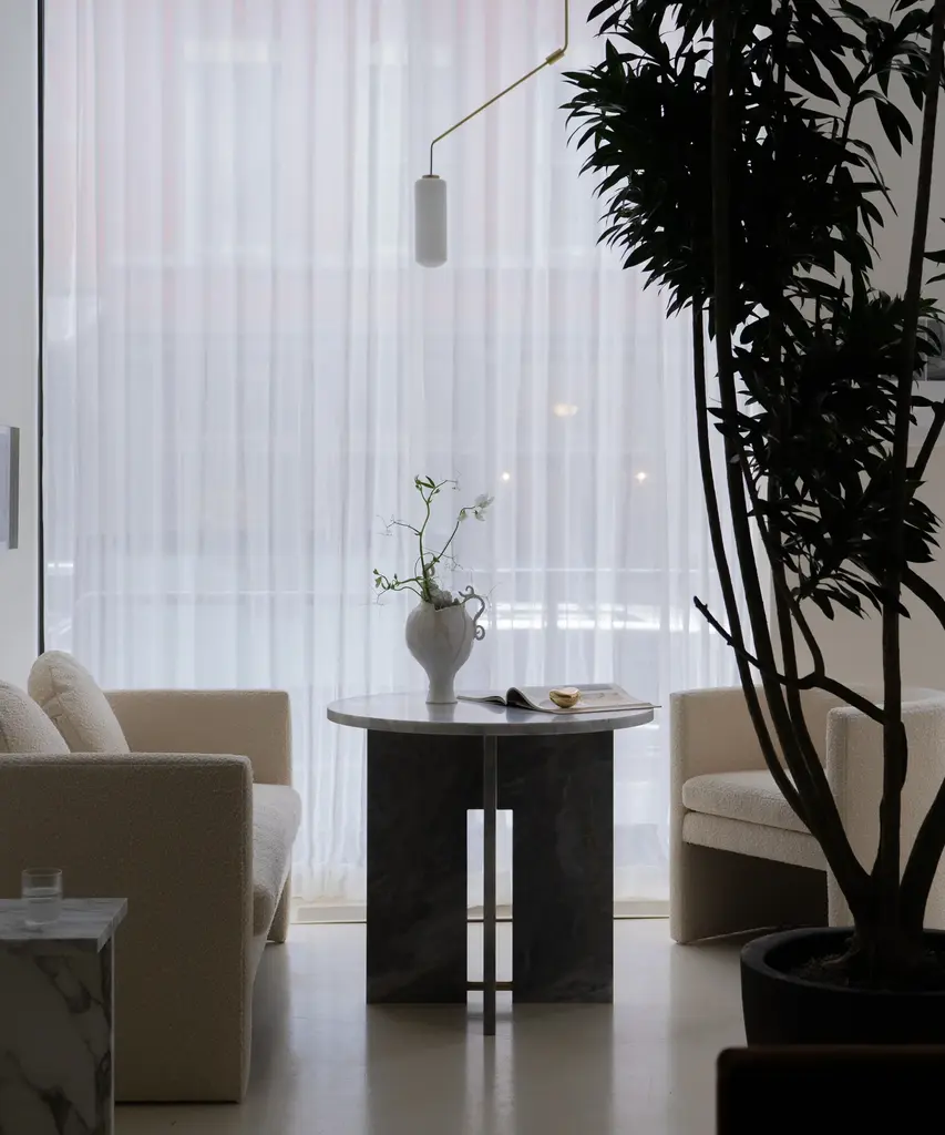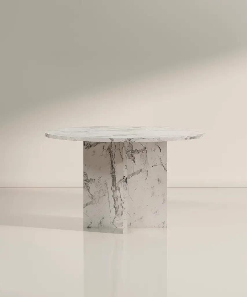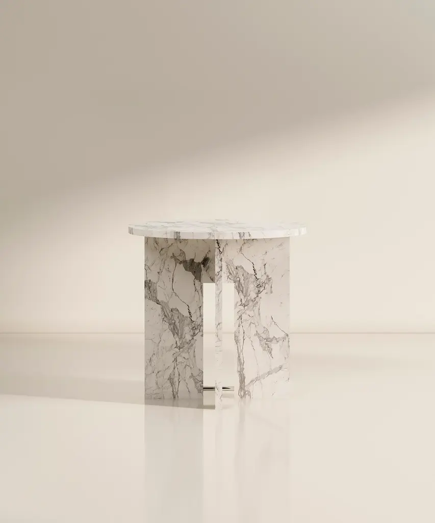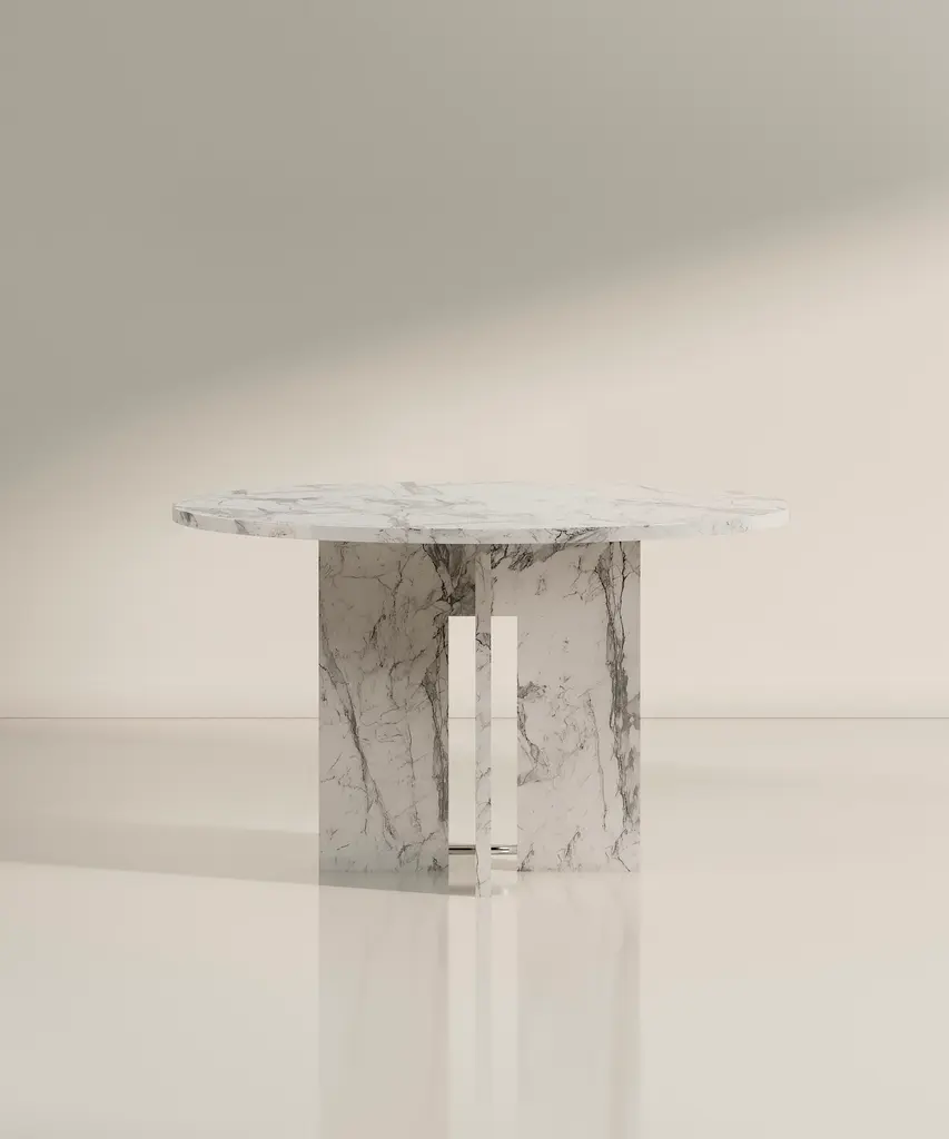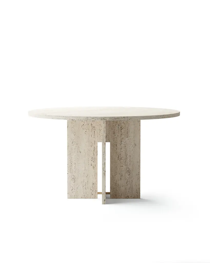 Simple, geometric planes combine in unexpected ways to create sculptural, yet functional forms. The TRNK Collection expands into new forms and materialities with the addition of the Segment Table Series. “The process for designing the Segment Series was reductive. I asked, how can we simplify these forms to make a dense material like solid stone feel a bit lighter? That's how the small gaps between adjoining slabs, which now define the collection, came about. I also considered how light interacts with the product, allowing the occasional ray to peer through the slivers of negative space." - Tariq Dixon, Designer For bringing this collection to life, we turned to Portugal - a country with a centuries-old history of stone artisanship. Each table is made-to-order using thick, solid slabs of raw travertine or honed stone and marble combined with metal rods for material contrast and unyielding structural support. We've added extra extra strength and support through aluminum insert construction, making the pieces lighter and less damage prone. (Please note, raw travertine has open pores, giving it an organic, textural surface. The dining table ships as disassembled components; however, our In-Home delivery service includes assembly.) Made from the finest quality materials and construction, the Segment Tables will gracefully age as timeless heirlooms. Note: This table should not be moved while assembled. White Glove services are required for any disassembly and reassembly.