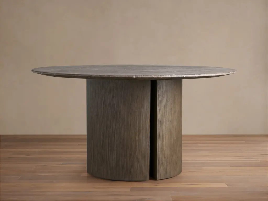 Patricia Urquiola transfers the poetry and conviviality of the Sengu sofa to the dining room, recalling the Japanese ritual of the perennial construction and reconstruction of shrines over the years. Sengu Table is an almost monumental piece of furniture that celebrates conviviality through poetic dialogue, placing an accent on the union of different materials that together express great visual tactility The oval and round table is characterised by a solid wood structure with an oval leg which is connected by one or two crosspieces to the two cylindrical legs. The top is in the same wood essence as the structure - Canaletto walnut, natural oak or stained black oak - or combined with a cylindrical column of strong presence available in a selection of marbles and coloured ceramics. It is also possible to add a Lazy Susan in enamelled ceramic to the round version; this revolving top is another important reference to the traditions of the orient.Materials:- Vertical panel and top in veneered panels of Canaletto walnut, black-stained oak, or matte lacquered in amaranth, midnight blue, or marron glacé.- Base in white Carrara marble, black Marquinia marble, or grey Carnico marble.