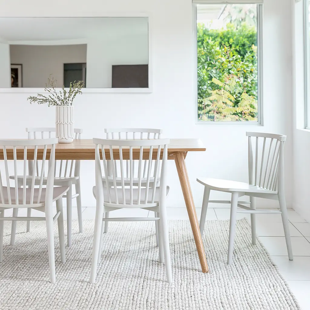 Pull up a chair to the Seno, where good taste is served daily. A classic mid-century shape, four slim solid wood legs, and a generous-sized tabletop tick all the boxes for a timeless piece of furniture. Comfortably fitting 8 people, the Seno is ready to host all the dinner parties, family game nights, and solo meals of PB&J you can throw at it—just remember to give the guests a placemat.