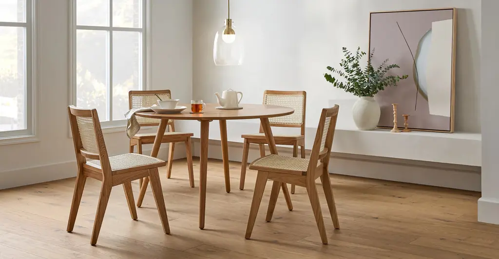 Gather ‘round. The solid wood of the Seno has been transformed into the quintessential round dining table to invite friends and family to sit at. American White Oak construction makes for an inviting environment.