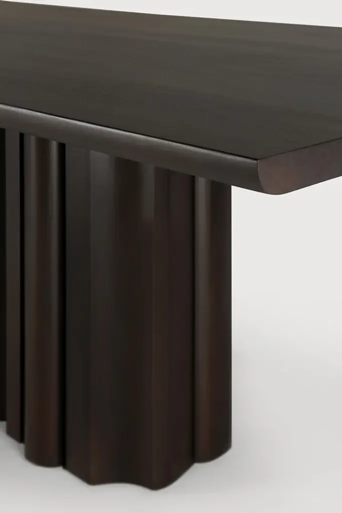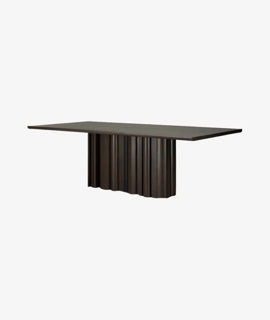 Inspired by the rhythmic flow of repetition and variation, the Sequence dining table brings a sense of movement to your space. Solid wooden elements form a sculptural base, where alternating shapes create a balanced interplay of presence and openness. A smooth tabletop provides a quiet contrast, grounding the design in simplicity.