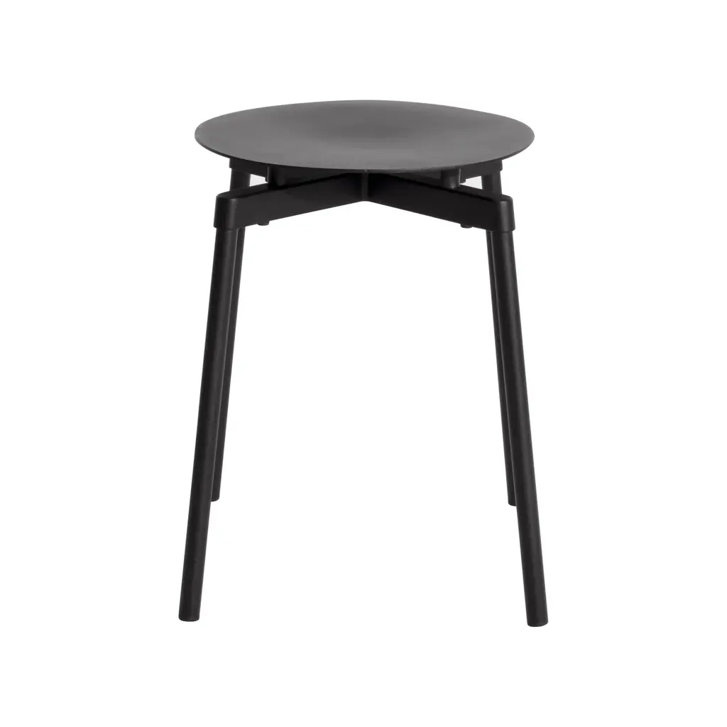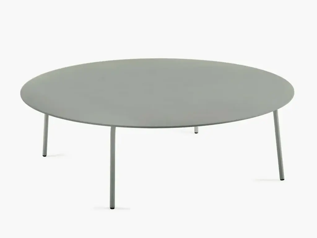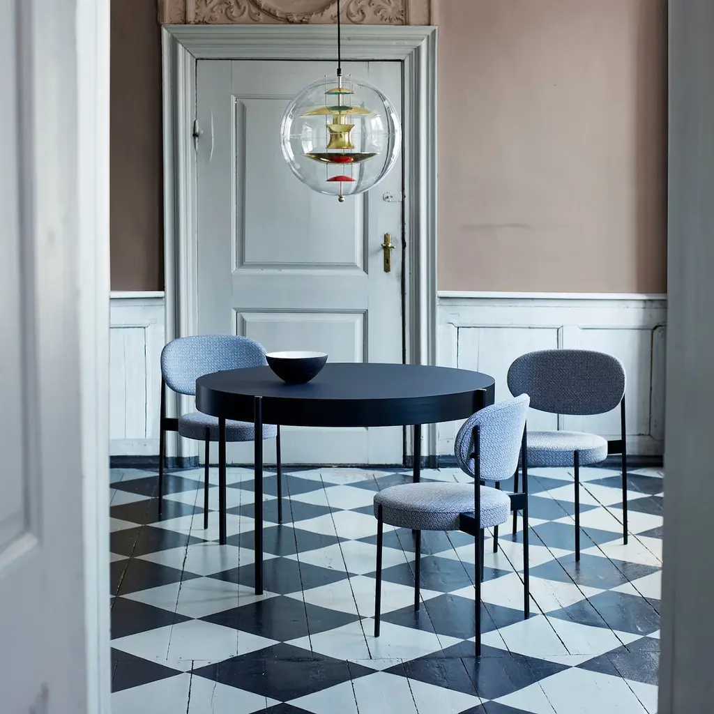 The circular lines of Series 430 seating designed by Verner Panton also provide the template for this companion dining table. Orienting the collection’s characteristic slim metal legs on the outside of the lacquered table edge gives the piece additional visual interest. Available in black or white in a choice of smaller and larger sizes, the tabletop is surfaced with a next-generation nanotech laminate.