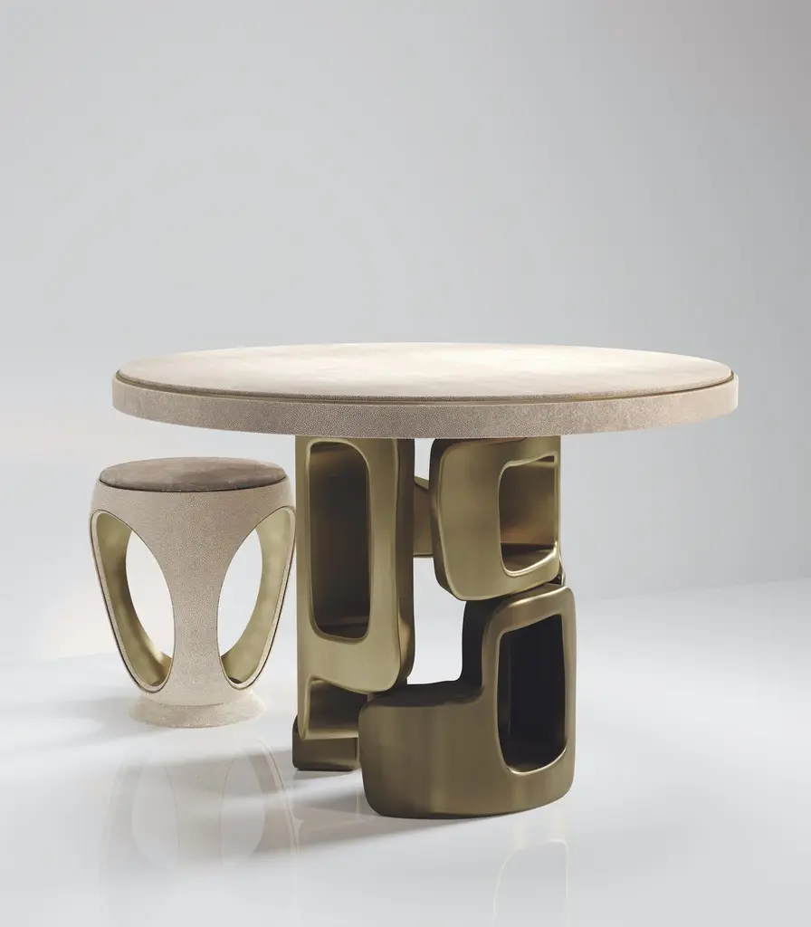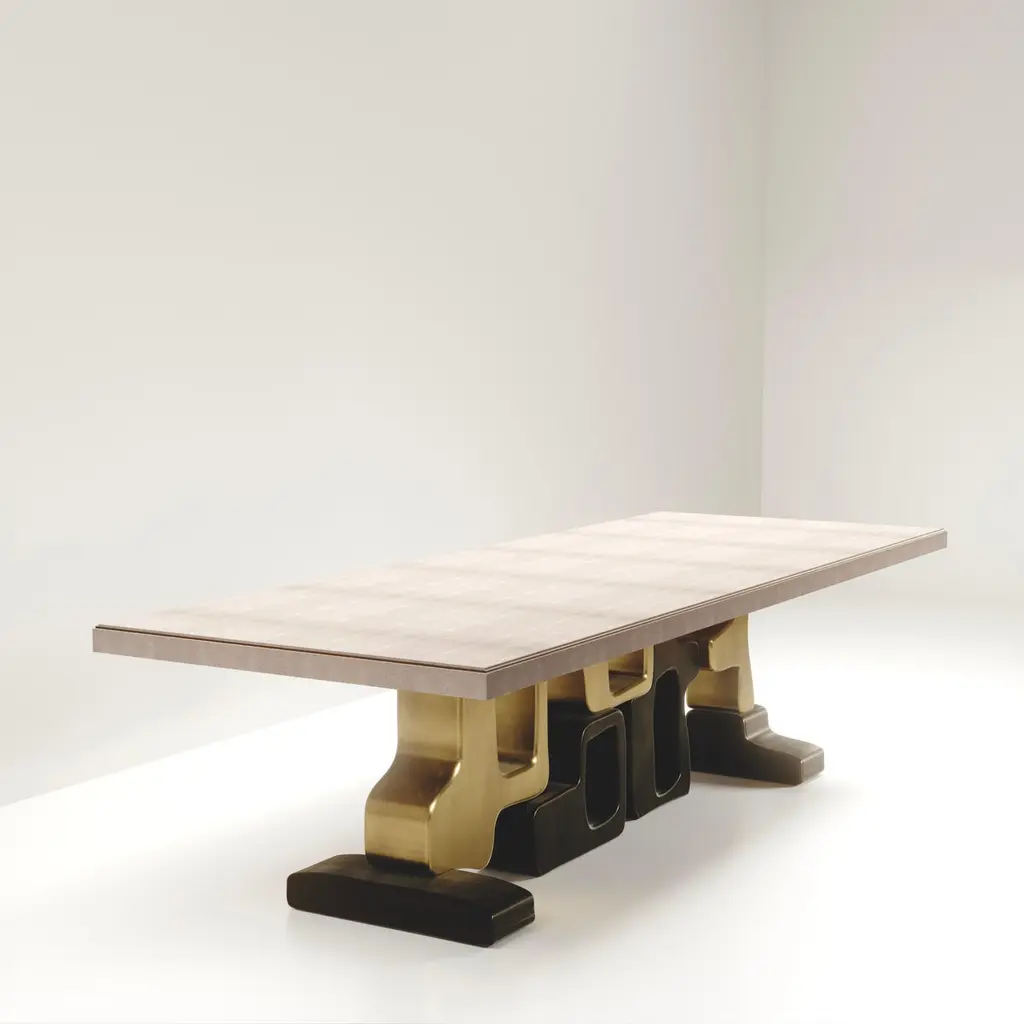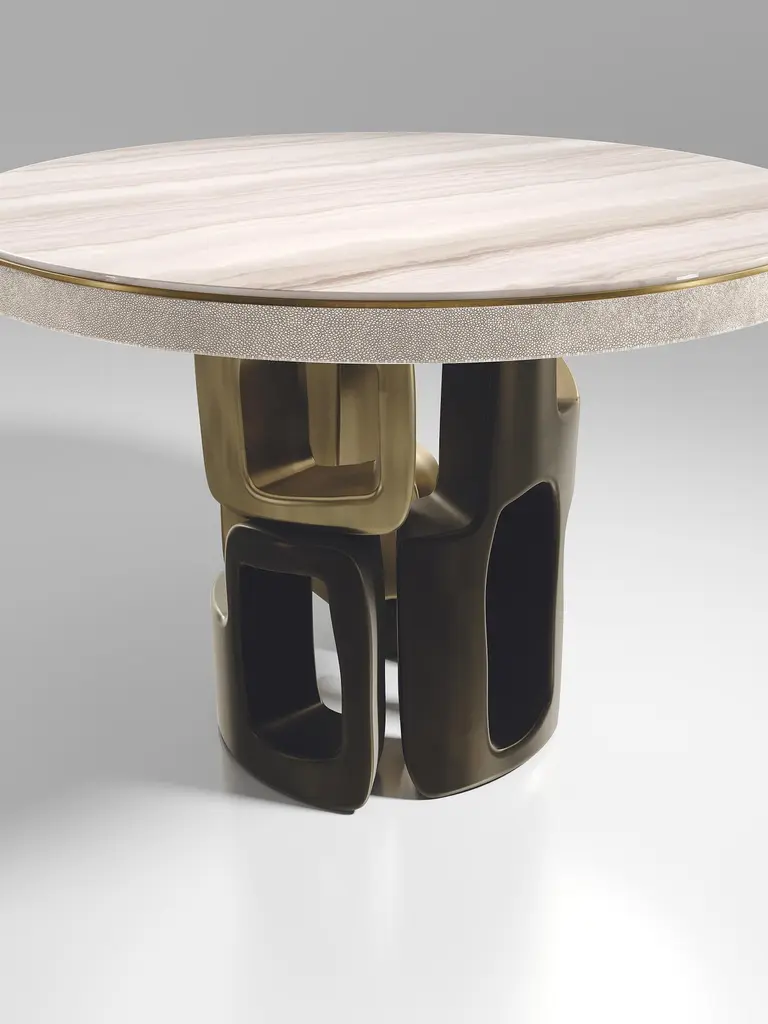 Shagreen Inlaid Dining Table With Bronze Patina Brass Details By Kifu Paris