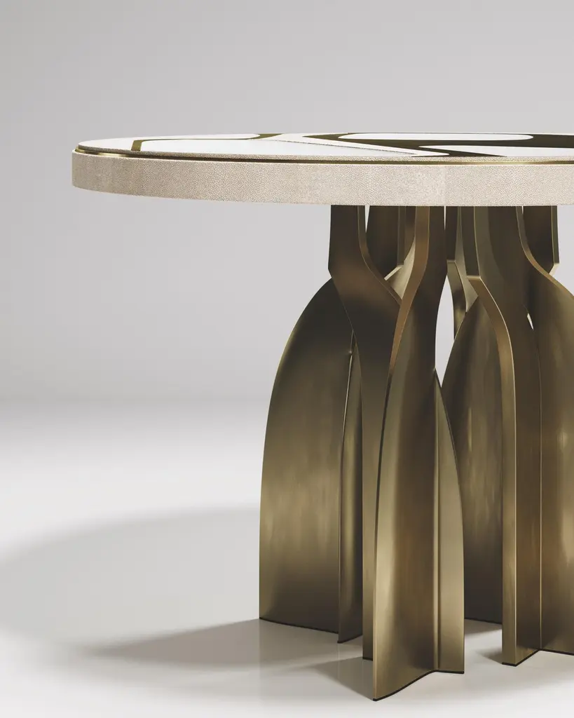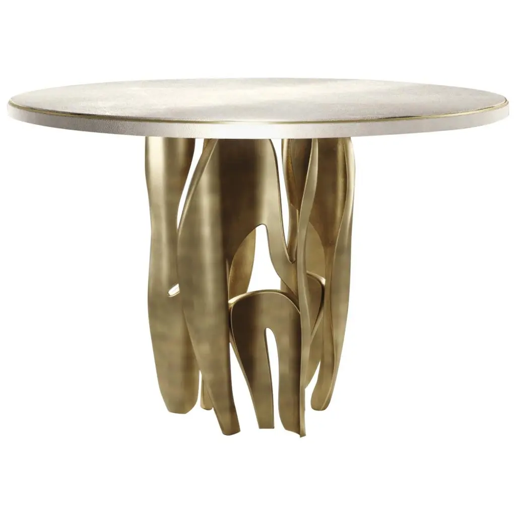 Shagreen Pattern Dining Table With Shell & Bronze Patina Brass By Kifu Paris